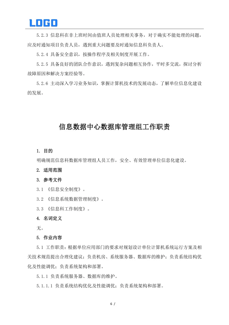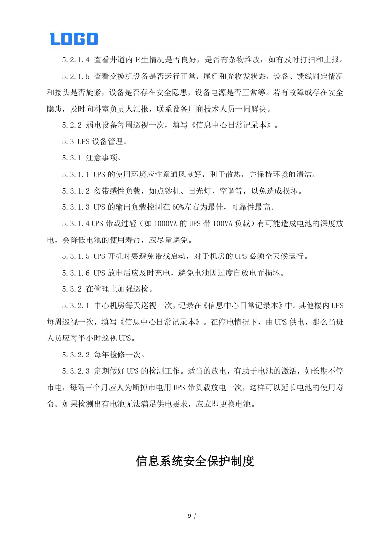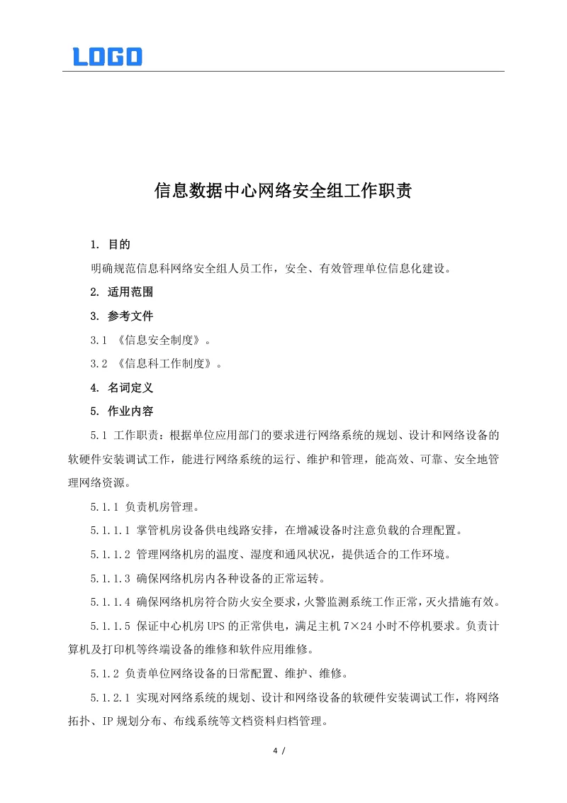 信息数据中心相关制度系列二(5篇Word) 本文目录概览: 1、信息安全制度 2、信息数据中心网络安全组工作职责 3、信息数据中心数据库管理组工作职责 4、信息数据中心弱电设备和UPS管理制度 5、信息系统安全保护制度 【其他相关资料】