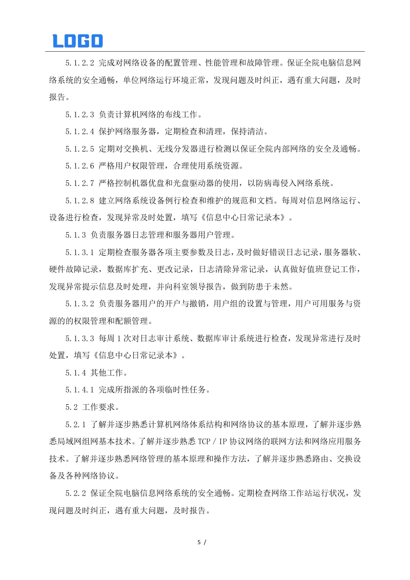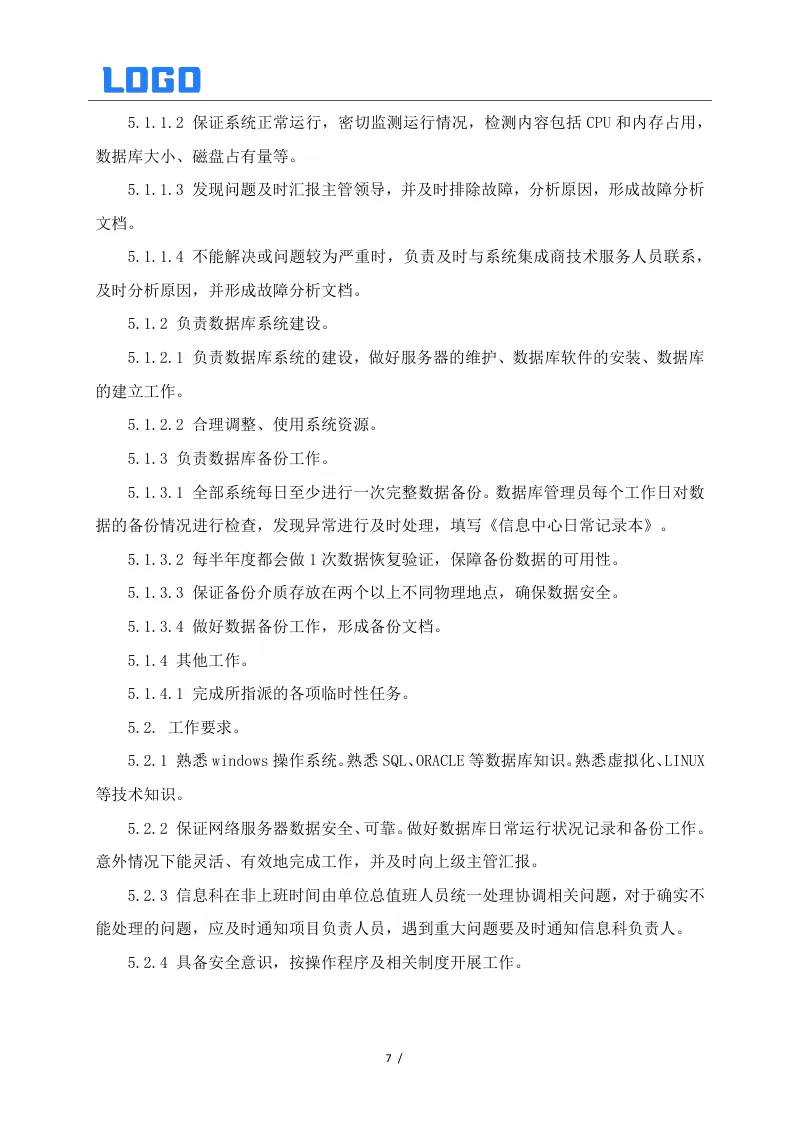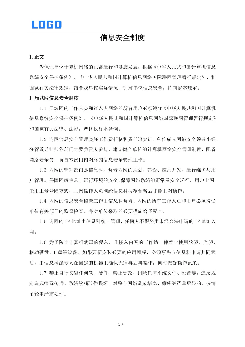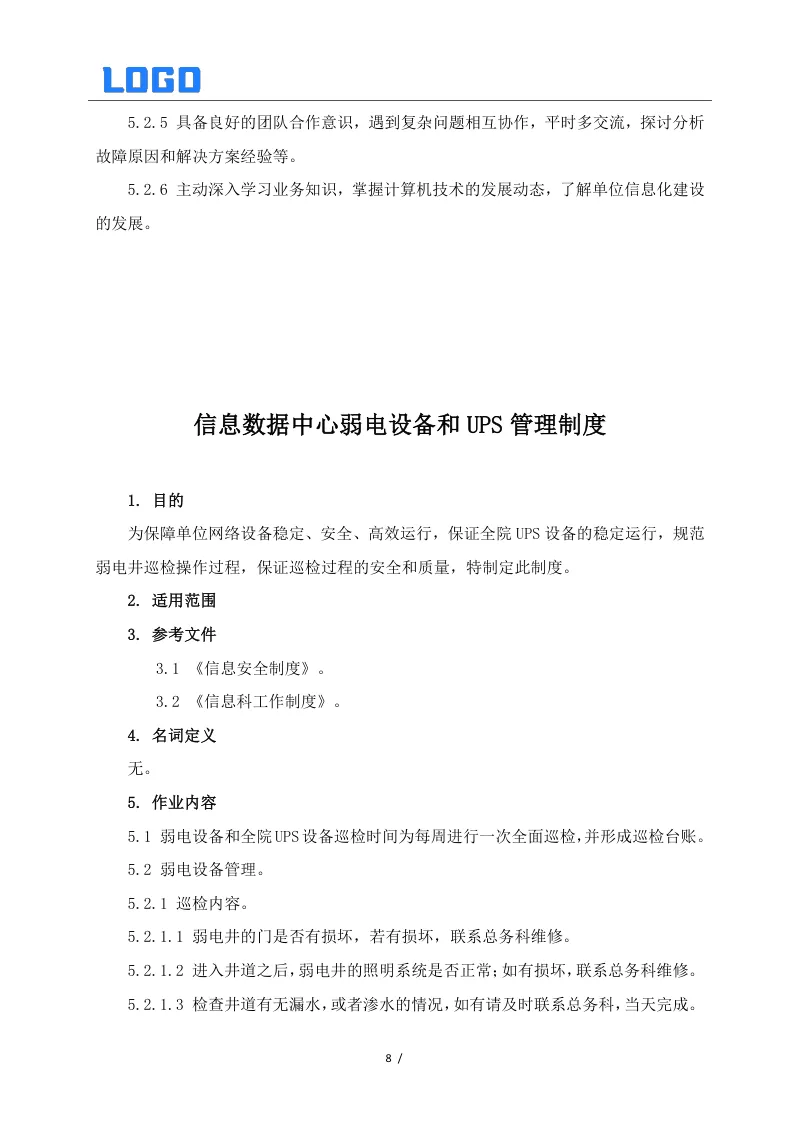 信息数据中心相关制度系列二(5篇Word) 本文目录概览: 1、信息安全制度 2、信息数据中心网络安全组工作职责 3、信息数据中心数据库管理组工作职责 4、信息数据中心弱电设备和UPS管理制度 5、信息系统安全保护制度 【其他相关资料】