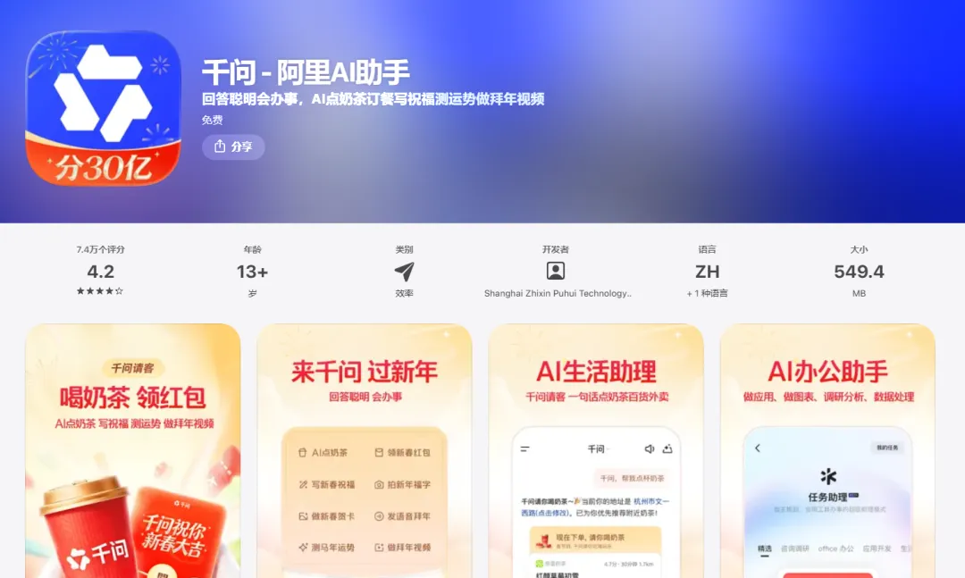 当其他AI应用还在用传统“发红包”方式吸引用户时,阿里千问抛下了一枚“重磅炸弹”——“春节30亿大免单”。