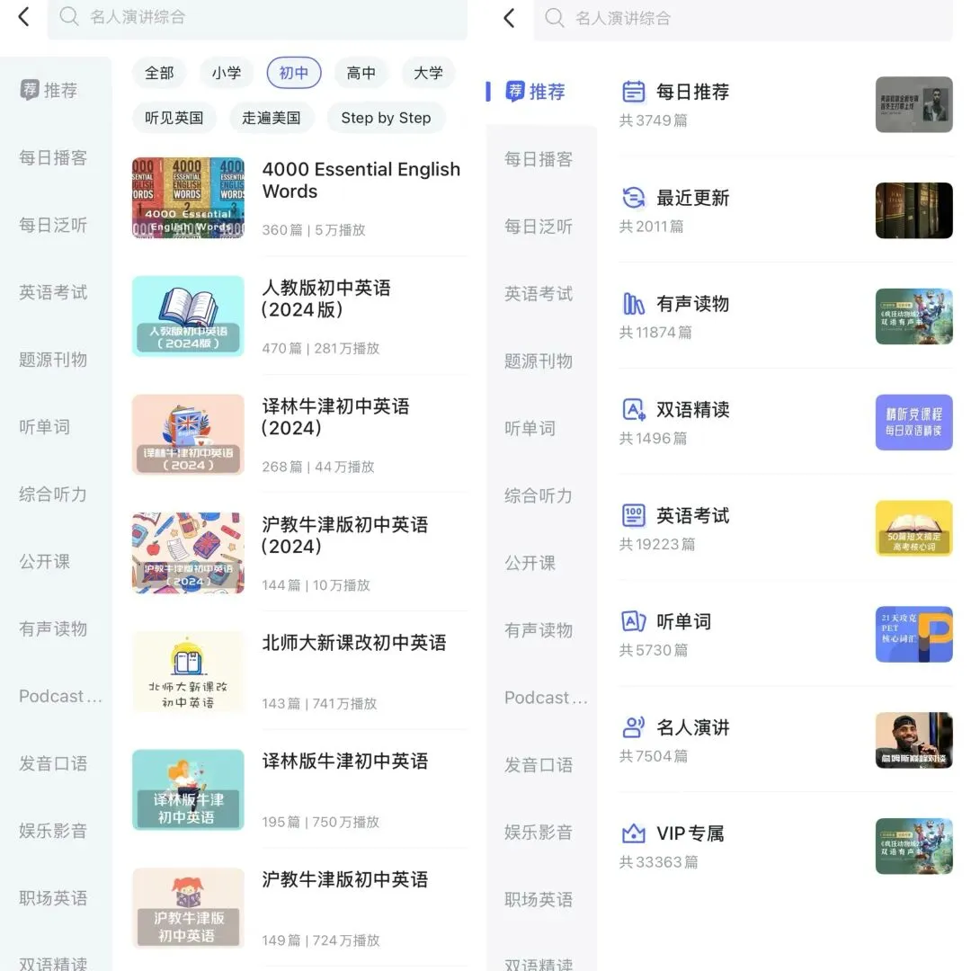 从中小学教材、各种英语考试,到最新的演讲、有声读物,应有尽有。