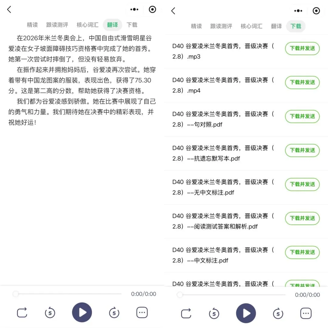 每篇文章都有对应的视频、音频、翻译等,都可以下载。