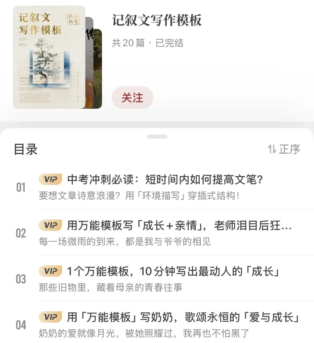 除了素材,还有写作模板,比如记叙文写作模板,每种结构都配有例句和段落示例,方便仿写。