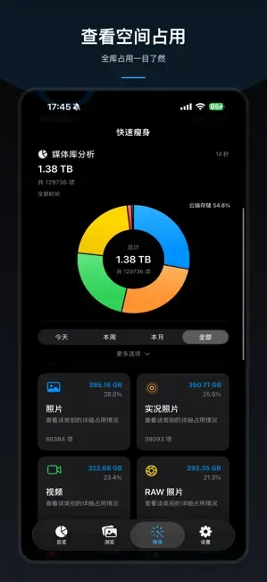 介绍:一款相册清理应用,专为 iPhone 打造,自动分组重复、相似、大文件、截图等相册内容,支持一键全选批量清理与压缩,压缩前可预览对比画质。还能按拍摄参数精准筛选,本地处理无需登录,高效释放手机存储空间。