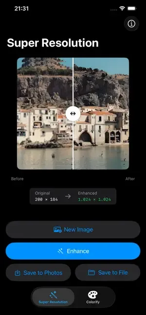 介绍:一款图片增强应用,AI 驱动的图像优化工具,搭载 Real-ESRGAN 实现 4 倍超分放大,为低清图补细节提锐度;通过 DDColor 给黑白照片智能上色,还原真实色彩。带前后对比滑块,全程本地处理无数据上传。