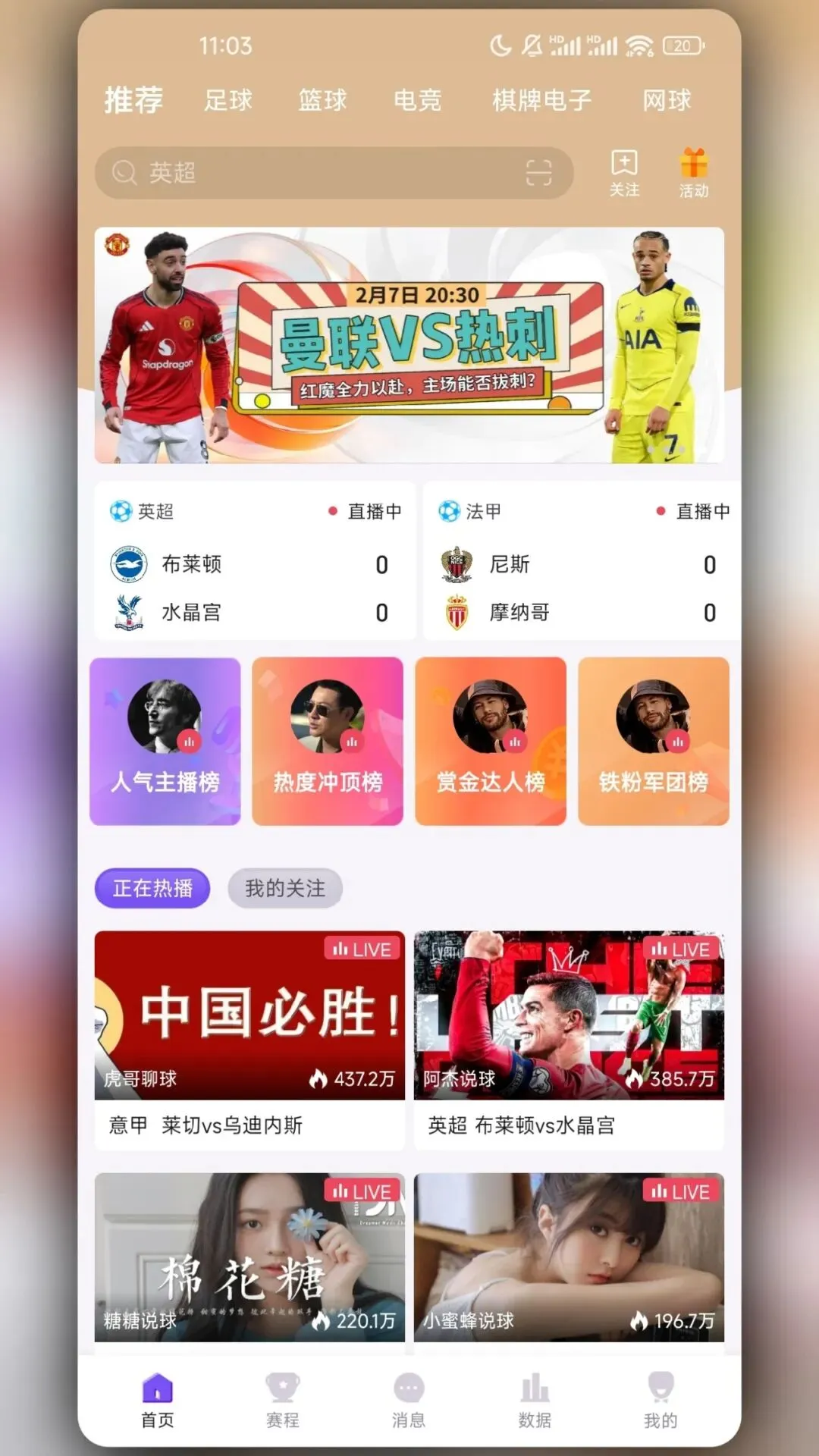 有些兄弟可能喜欢看某些主播讲球,也有。