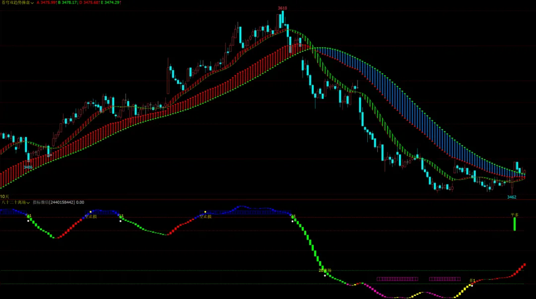 3、苍穹双趋势操盘主图,八十二十离场幅图