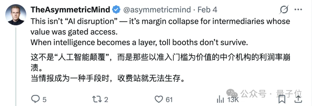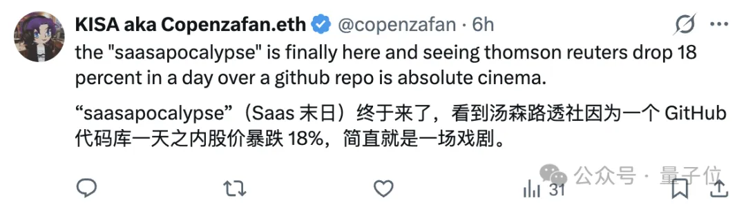 参考链接:[1]https://x.com/alanchen/status/2019122766998642817[2]https://www.businessinsider.com/ai-software-tech-stocks-sell-off-nvidia-jensen-huang-illogical-2026-2