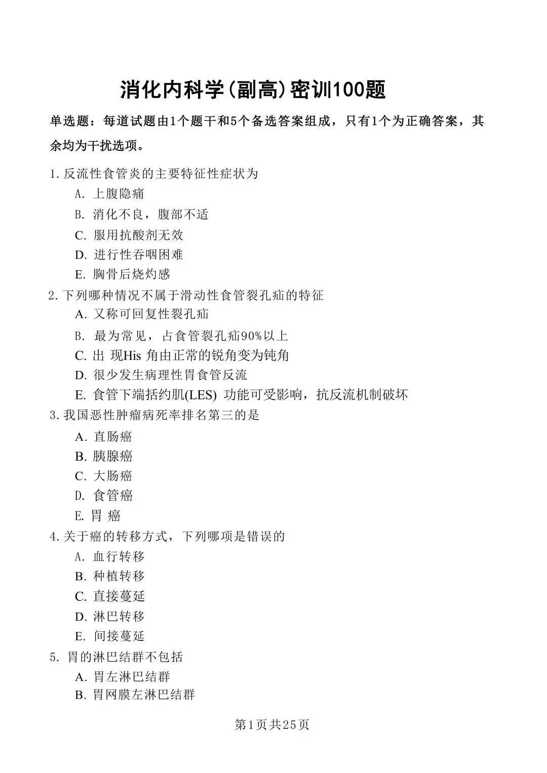 【免费下载打印.pdf】消化内科高级职称003副高密训100题