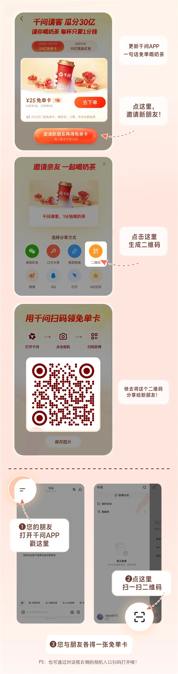 与此同时,千问“春节30亿元大免单”活动热度仍在持续。官方多次提醒,已将免单卡有效期统一延长至2月28日,并明确表示免单卡“一定能用掉”