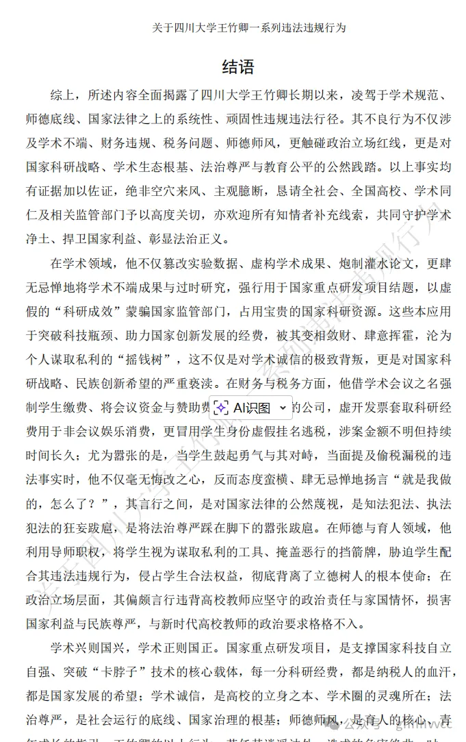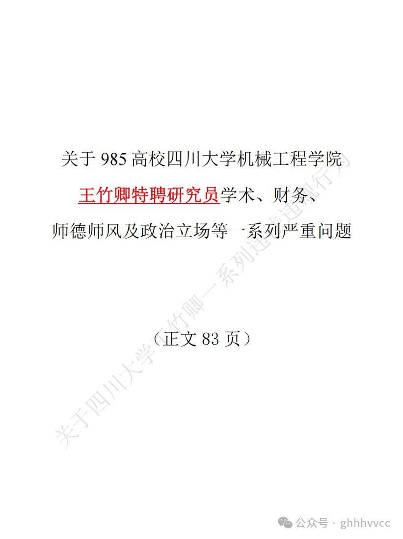 四川大学83页pdf事件完整经过,王竹卿83页pdf完整版,王竹卿简介,王竹卿是哪里人