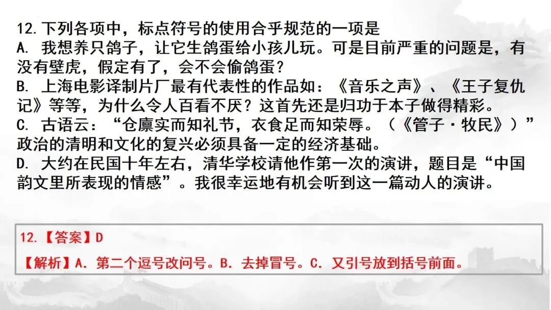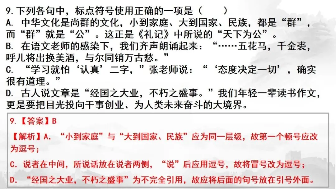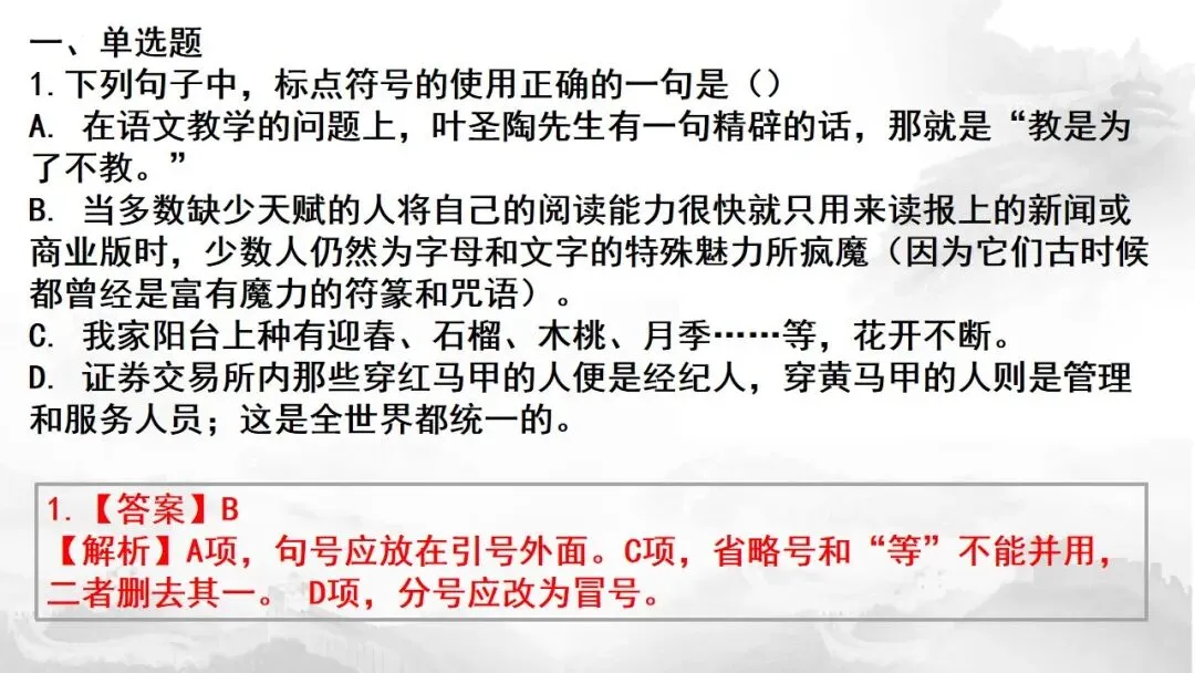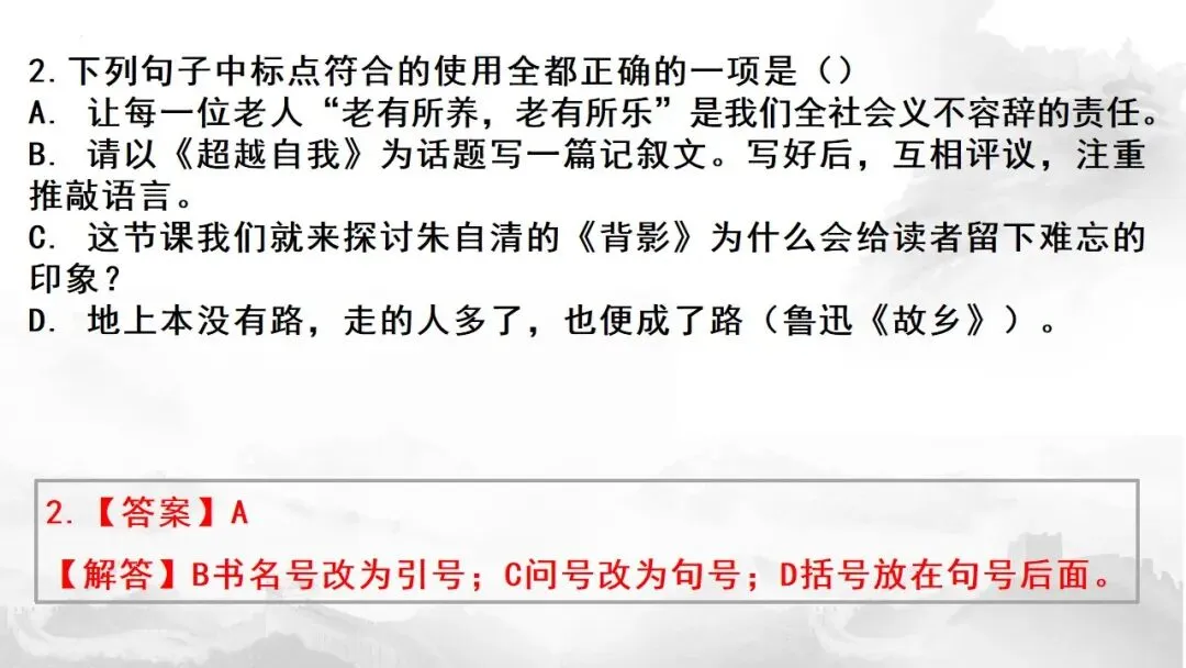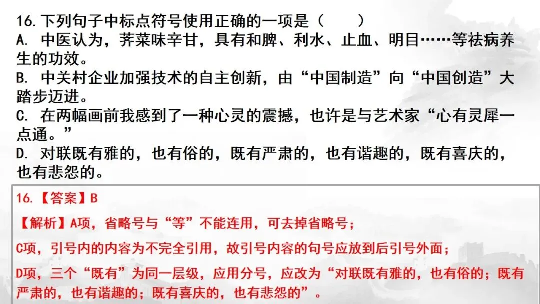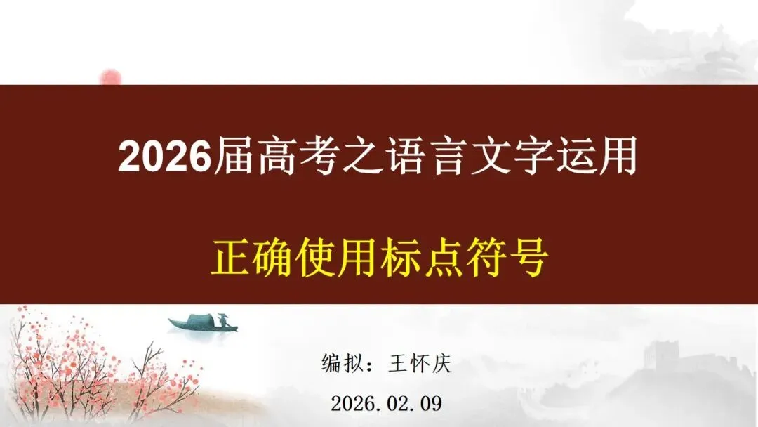 【第32期】(免费下载)2026届高考语文复习之正确使用标点符号课件107张(最完备) (免费)下载链接:2026届高考热点之正确使用标点符号课件107张(最完备).pptx 往期回顾 【第28期】2026高考新题型之比喻相似性(新)公益性(页面有下载链接) 【第30期】(庆哥语文2.6免费下载)无锡市2025年秋学期高三语文期末调研语文解析课件(古诗文部分) 【第31期】2026届高考“漫画题型”最全汇总最后一课(公益性,页面有下载链接) 【第1期】材料作文“焦虑”导写 【第2期】材料+漫画作文“宫商驴”导写 【第3期】材料作文“科学与试错”素材运用指导 【第4期】材料作文“偏见”导写 【第5期】材料作文“顶端优势”导写 【第6期】材料作文“文字讨好症”素材运用指导 【第7期】材料作文“青春的热度与持久力”导写 【第8期】江苏省淮安中学高三期末模拟作文:“宫商驴”导写(一部三部学生佳作展示) 【第9期】材料作文“靠自己”素材运用指导 【第10期】漫画作文“照亮自己与点亮自己”导写及素材运用指导(江苏省南京市、盐城市2025-2026学年高三上学期期末调研测试) 【第11期】材料作文“做中国人与做世界人”导写及素材运用指导(青岛市2026届高三部分学生(尖子生)上学期期末检测) 【第12期】材料作文“真诚”素材运用指导 【第13期】材料作文“信任”导写及素材运用指导(扬州市2025-2026学年第一学期高三期末调研测试) 【第14期】材料作文“打扮自己与打扮大地”导写及素材运用指导(温州市2025学年第一学期语文高三期末评价题) 【第15期】材料作文“会与做”导写及素材运用指导(烟台市2025—202学年度第一学期期末学业质量水平检测) 【第16期】材料作文“已识乾坤大与犹怜草木青”导写及素材运用指导(金华十校2025-2026学年第一学期期末调研考试) 【第17期】材料作文““干道与小道””导写及素材运用指导(苏北四市2026届高三第一次调研) 【第18期】苏北四市2026届高三第一次调研考试语文解析课件(庆哥语文初稿1.28) 【第19期】材料作文“信仰”导写与素材运用 【第20期】(庆哥语文定稿更具操作性)苏北四市2026届高三第一次调研考试语文解析课件 【第21期】(适用于2026届)2025届江苏省淮安中学高三3部语文最后一课图解版+押题(编制:庆哥语文) 【第22期】材料作文“突破极限”导写及素材运用指导(2026届广州市高三年级调研测试) 【第23期】材料作文“功夫”导写及素材运用指导(2026届高三惠二调) 【第24期】材料作文“‘我和你’俗语”导写及素材运用指导(2026届金陵、姜堰、前黄、南菁四校12月联考) 【第25期】(庆哥语文初稿2.4)苏州市2026届高三期末语文解析课件 【第26期】材料作文“强大内心”导写与素材运用指导(山东省泰安市2025-2026学年高三上学期期末考试) 【第27期】苏州市上学期期末高三语文试题(含详细答案配合庆哥语文课件)打印版 【第28期】2026高考新题型之比喻相似性(新)公益性 【第29期】材料作文“面对善意的批评与做自己”导写及素材运用指导(苏州市2026届高三期末检测) 欢迎关注公众号: 部分取材网络,如需修改,敬请联系: