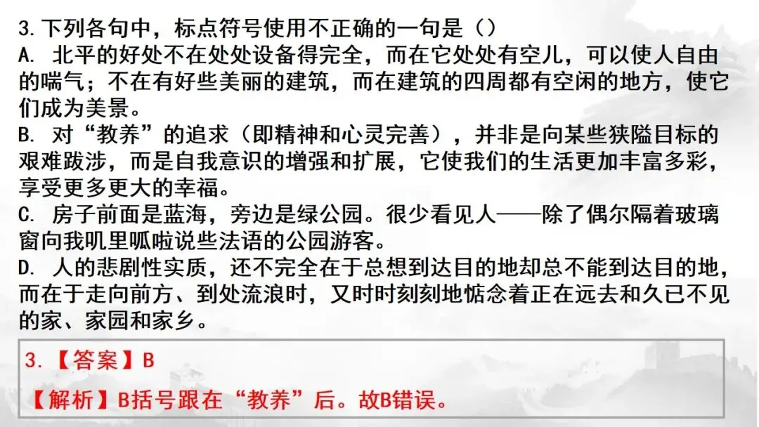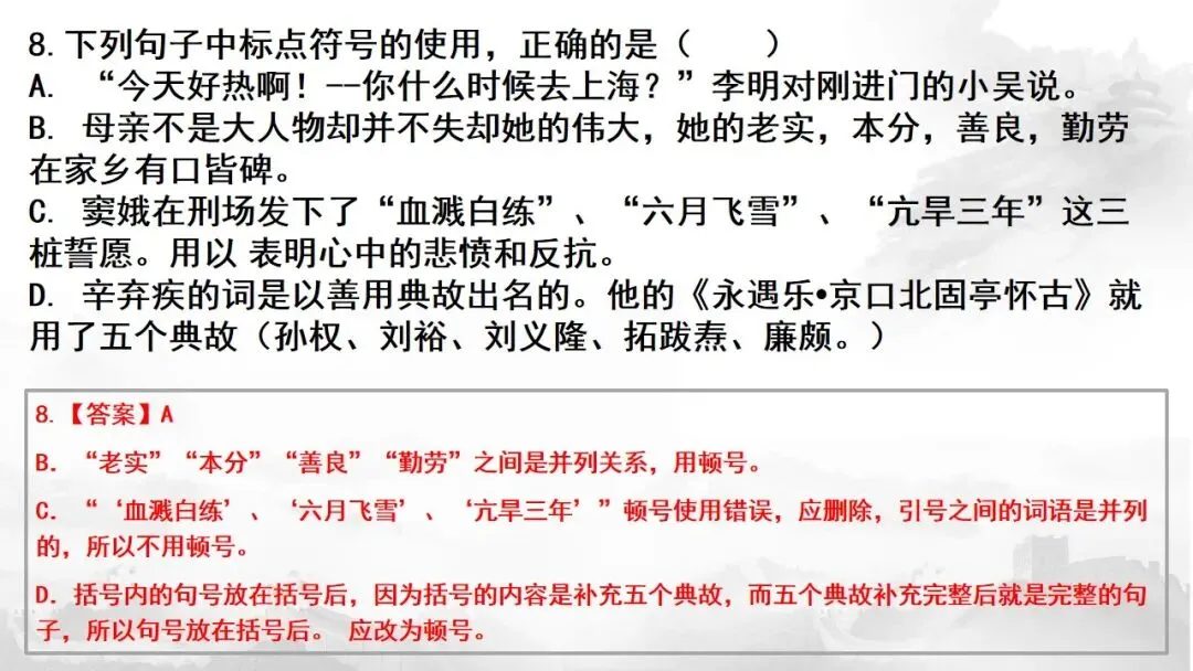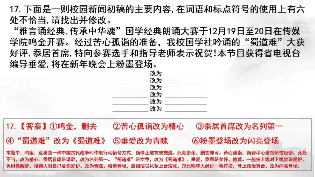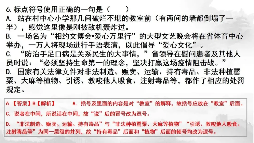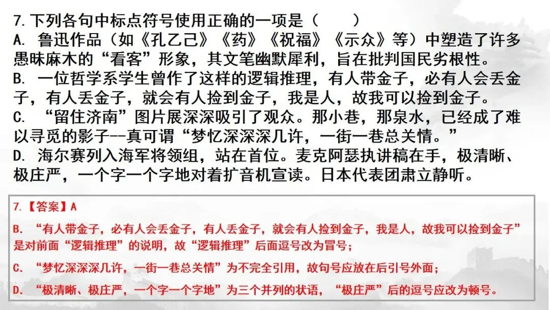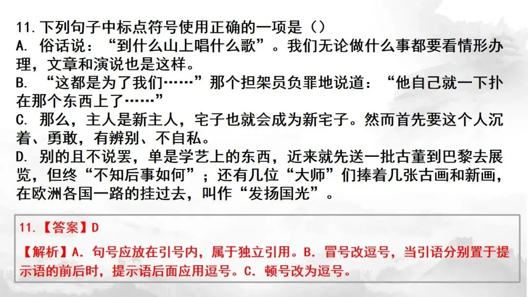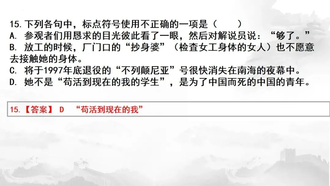 【第32期】(免费下载)2026届高考语文复习之正确使用标点符号课件107张(最完备) (免费)下载链接:2026届高考热点之正确使用标点符号课件107张(最完备).pptx 往期回顾 【第28期】2026高考新题型之比喻相似性(新)公益性(页面有下载链接) 【第30期】(庆哥语文2.6免费下载)无锡市2025年秋学期高三语文期末调研语文解析课件(古诗文部分) 【第31期】2026届高考“漫画题型”最全汇总最后一课(公益性,页面有下载链接) 【第1期】材料作文“焦虑”导写 【第2期】材料+漫画作文“宫商驴”导写 【第3期】材料作文“科学与试错”素材运用指导 【第4期】材料作文“偏见”导写 【第5期】材料作文“顶端优势”导写 【第6期】材料作文“文字讨好症”素材运用指导 【第7期】材料作文“青春的热度与持久力”导写 【第8期】江苏省淮安中学高三期末模拟作文:“宫商驴”导写(一部三部学生佳作展示) 【第9期】材料作文“靠自己”素材运用指导 【第10期】漫画作文“照亮自己与点亮自己”导写及素材运用指导(江苏省南京市、盐城市2025-2026学年高三上学期期末调研测试) 【第11期】材料作文“做中国人与做世界人”导写及素材运用指导(青岛市2026届高三部分学生(尖子生)上学期期末检测) 【第12期】材料作文“真诚”素材运用指导 【第13期】材料作文“信任”导写及素材运用指导(扬州市2025-2026学年第一学期高三期末调研测试) 【第14期】材料作文“打扮自己与打扮大地”导写及素材运用指导(温州市2025学年第一学期语文高三期末评价题) 【第15期】材料作文“会与做”导写及素材运用指导(烟台市2025—202学年度第一学期期末学业质量水平检测) 【第16期】材料作文“已识乾坤大与犹怜草木青”导写及素材运用指导(金华十校2025-2026学年第一学期期末调研考试) 【第17期】材料作文““干道与小道””导写及素材运用指导(苏北四市2026届高三第一次调研) 【第18期】苏北四市2026届高三第一次调研考试语文解析课件(庆哥语文初稿1.28) 【第19期】材料作文“信仰”导写与素材运用 【第20期】(庆哥语文定稿更具操作性)苏北四市2026届高三第一次调研考试语文解析课件 【第21期】(适用于2026届)2025届江苏省淮安中学高三3部语文最后一课图解版+押题(编制:庆哥语文) 【第22期】材料作文“突破极限”导写及素材运用指导(2026届广州市高三年级调研测试) 【第23期】材料作文“功夫”导写及素材运用指导(2026届高三惠二调) 【第24期】材料作文“‘我和你’俗语”导写及素材运用指导(2026届金陵、姜堰、前黄、南菁四校12月联考) 【第25期】(庆哥语文初稿2.4)苏州市2026届高三期末语文解析课件 【第26期】材料作文“强大内心”导写与素材运用指导(山东省泰安市2025-2026学年高三上学期期末考试) 【第27期】苏州市上学期期末高三语文试题(含详细答案配合庆哥语文课件)打印版 【第28期】2026高考新题型之比喻相似性(新)公益性 【第29期】材料作文“面对善意的批评与做自己”导写及素材运用指导(苏州市2026届高三期末检测) 欢迎关注公众号: 部分取材网络,如需修改,敬请联系: