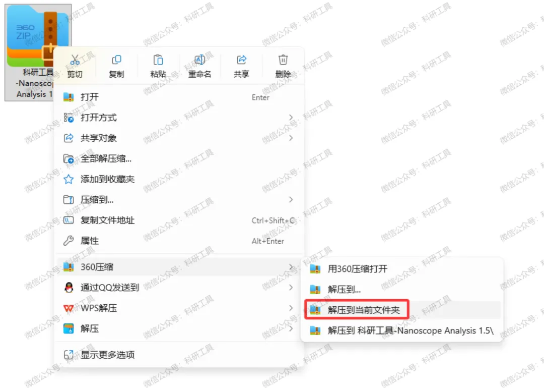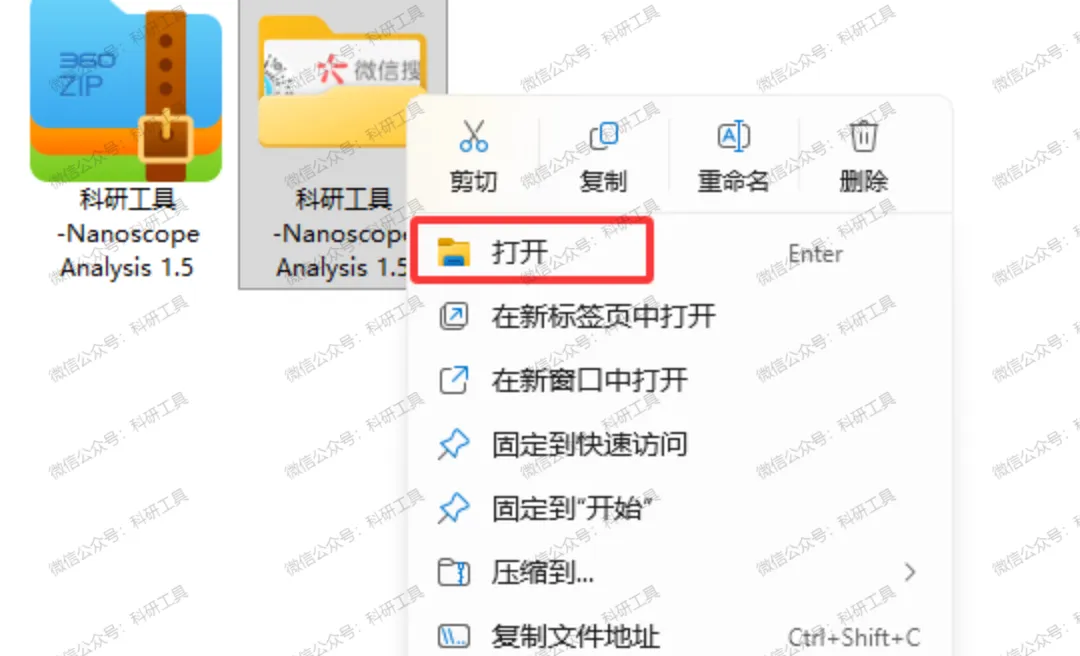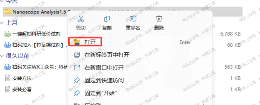 📥 下载压缩包“科研工具-Nanoscope Analysis 1.5”至电脑本地,右键解压到当前文件夹(建议解压至桌面,便于后续查找);