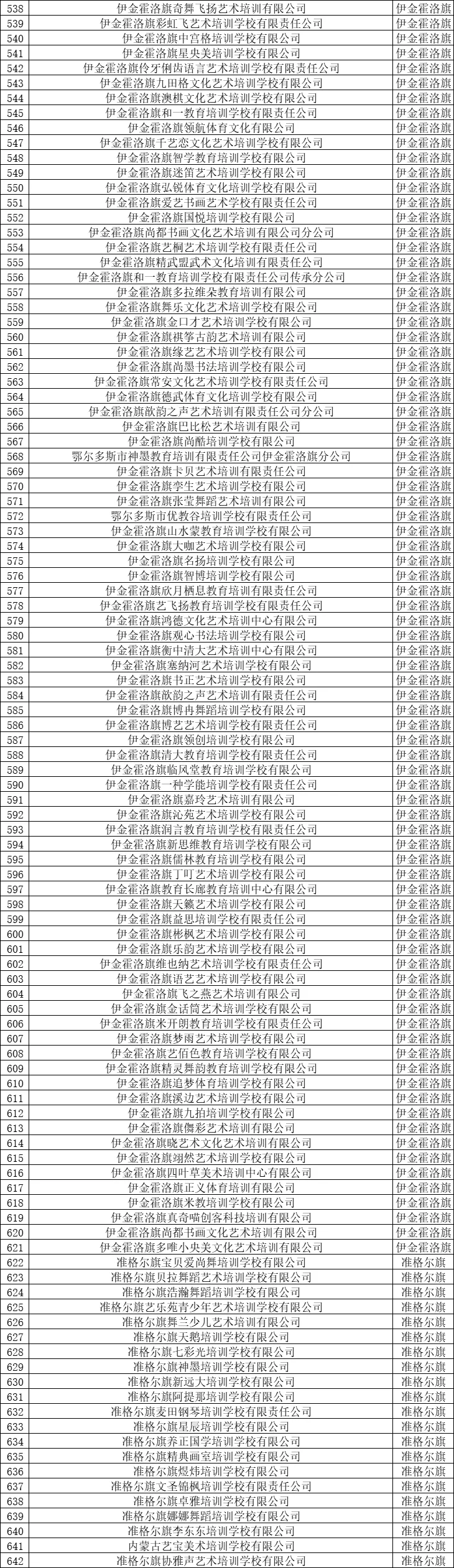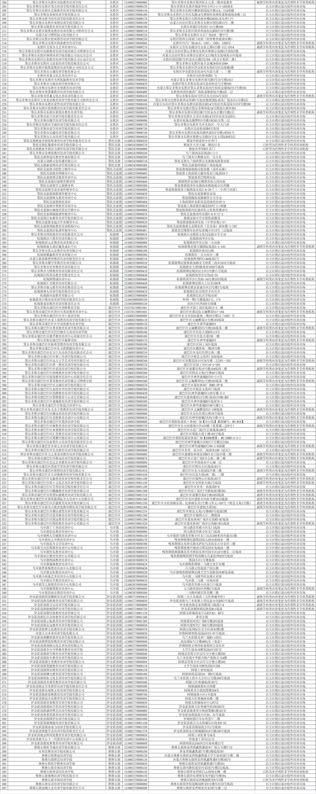 2.鄂尔多斯市全流程监管校外培训机构名单