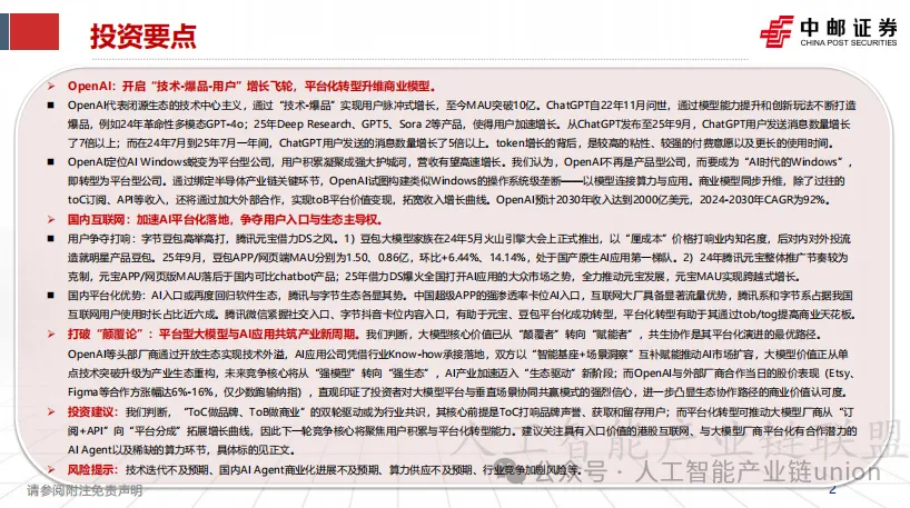 三、产业逻辑:平台型大模型与 AI 应用的共生共荣