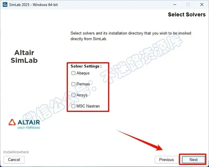 16.指定要使用的非Altair求解器的安装位置,点击“Next”