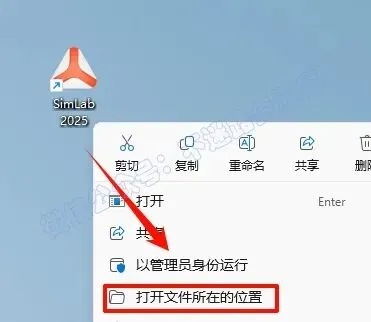 22.在桌面上选中”SimLab 2025”软件图标,鼠标右键点击“打开文件所在位置”
