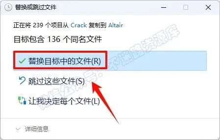 25.点击“替换目标中的文件“(若提示需要权限,勾选“为所有…”,点击“继续”)