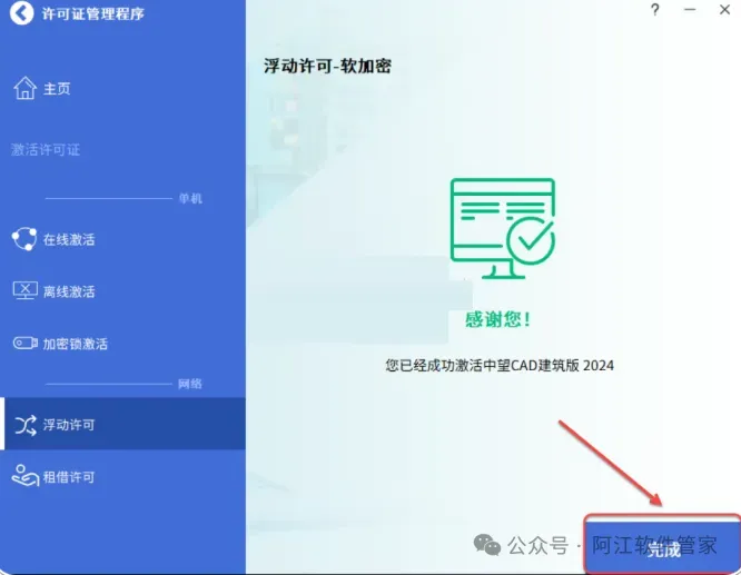 6、界面提示“安装完成”时,点击右上角【X】或【完成】关闭安装向导。