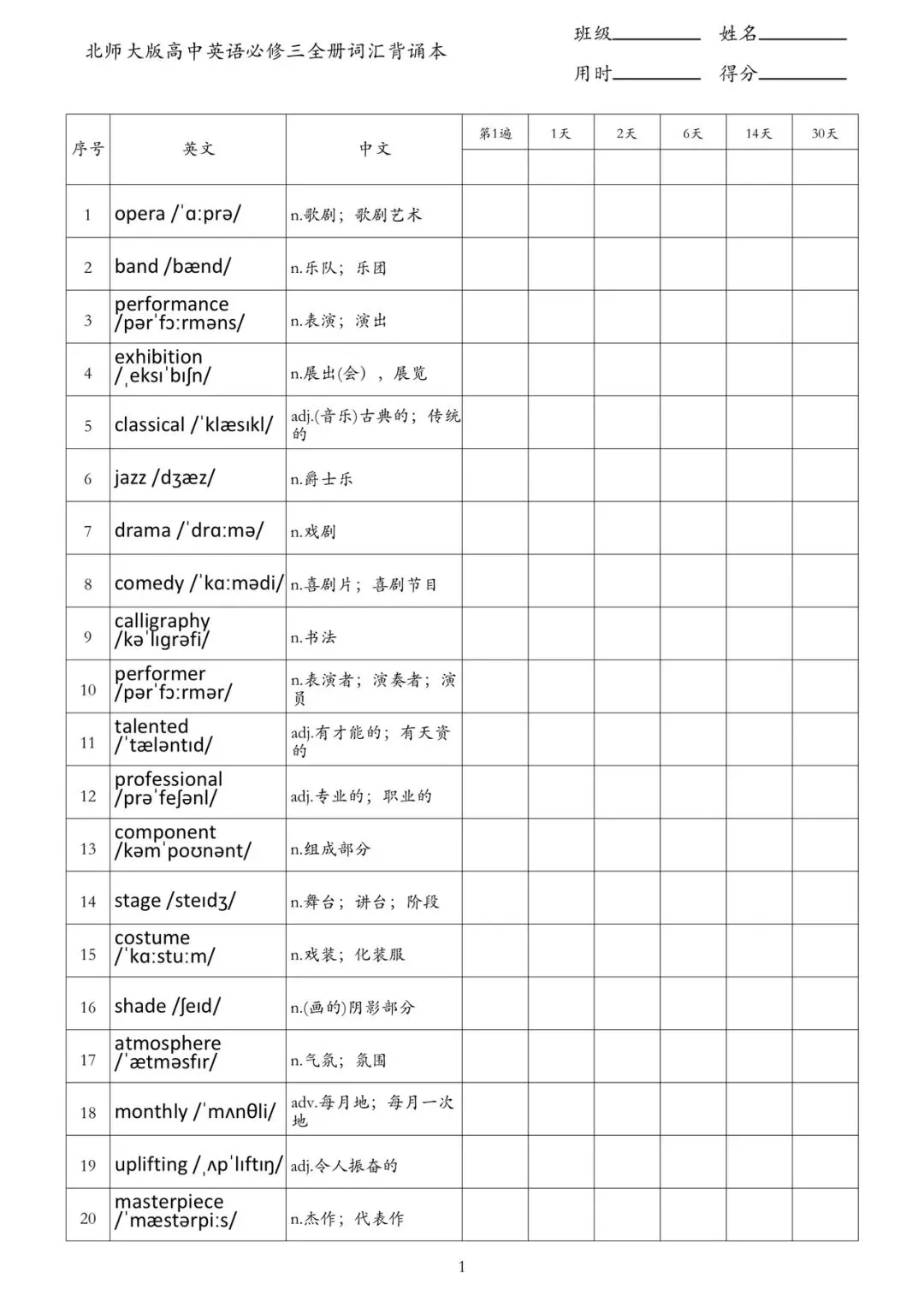 假期词汇狂背:北师大版高中英语课本词汇PDF打印本(全七册)