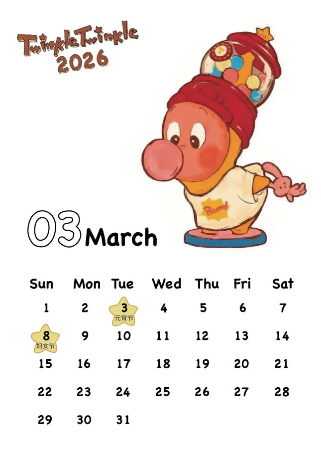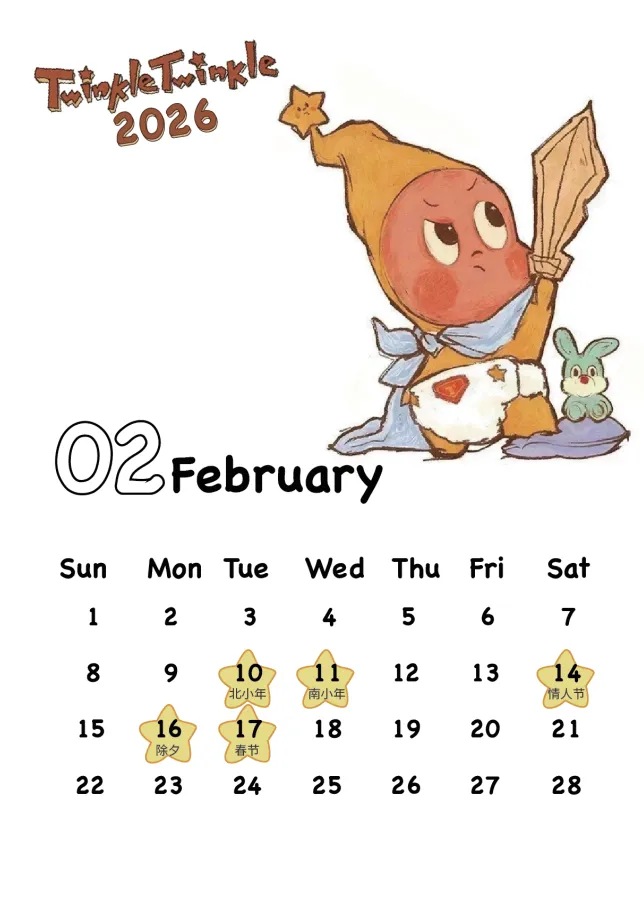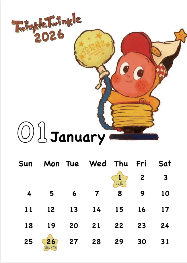 2026年最新台历《星星人台历模板》PDF电子版 可打印下载