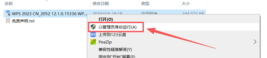 2.打开刚刚解压好的文件夹,找到【W-P–S 2023 CN_2052 12.1.0.15336 W-P–SPlus.exe】,鼠标右键选择【以管理员身份运行】。