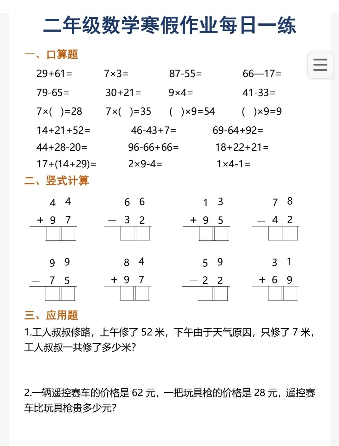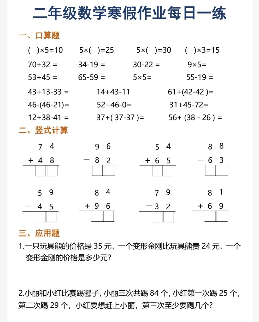 2025二年级数学寒假作业每日一练.pdf