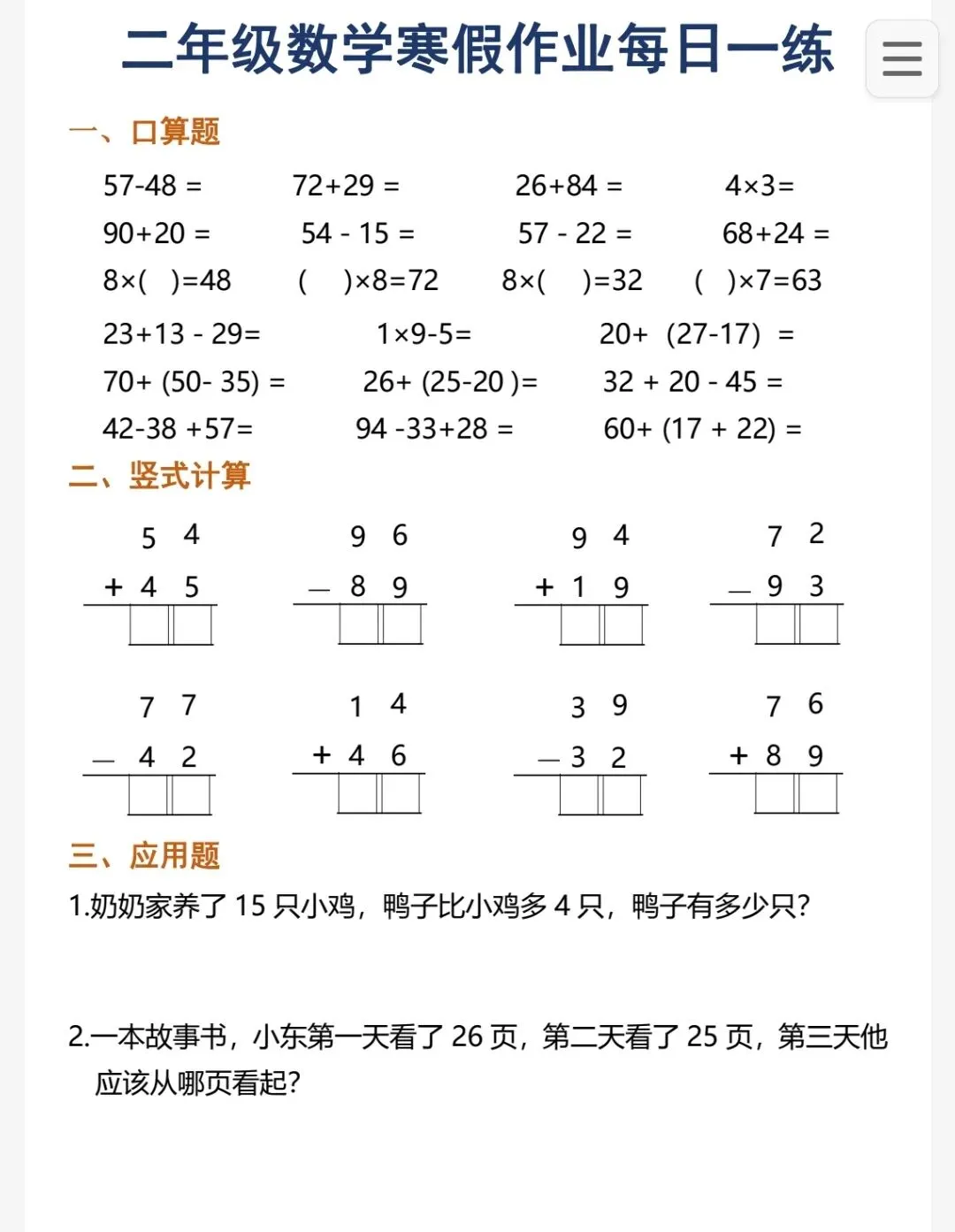 📚二年级数学寒假自救指南|每日一练太香了!