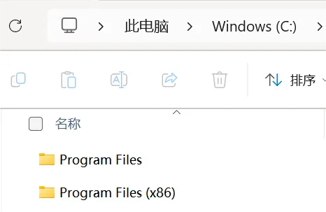 1️⃣Office安装完成后需要查看账户是否已被激活。首先,在C盘中找到如下图所示的两个文件夹,如果下载位数为64位则点击“Program Files”,位数为32位则点击“Program Files(x86)“。