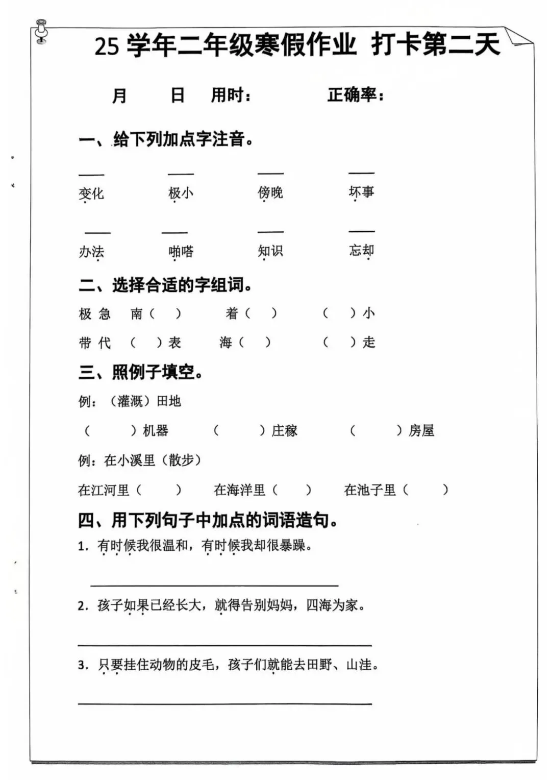 语文《作业每日打卡20天》二年级