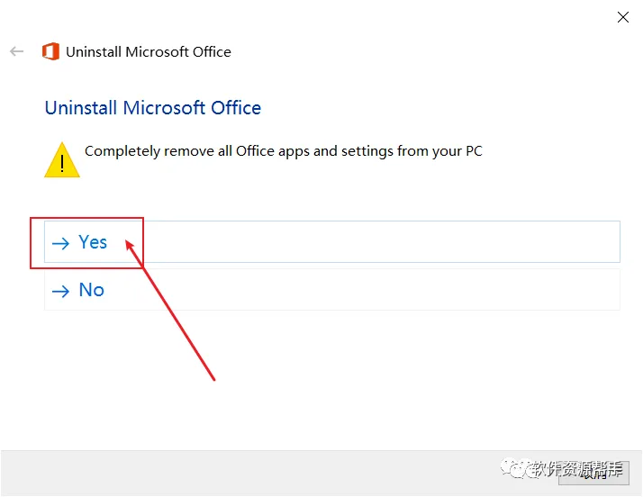 5.问你是否完全移除电脑上所有的办公软件及设定,点击Yes;