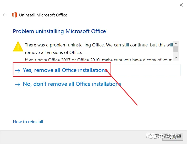 如果您无法卸载 Microsoft Office 套件,您的“添加或删除程序”对话框可能存在问题,或无法卸载某些 Microsoft Office 组件。在这些情况下,您无法重新安装 Microsoft Office 套件。