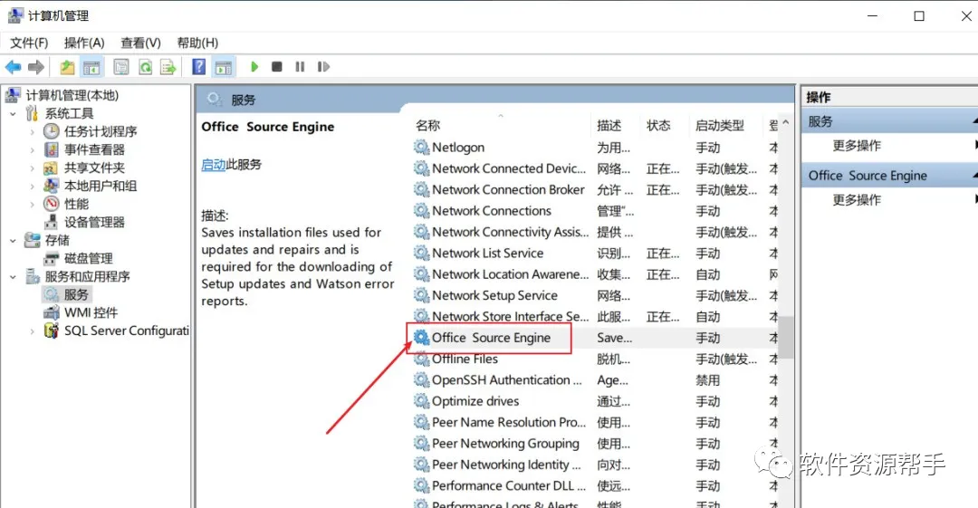 14.将Office Source Engine的状态停止再重新进行卸载;