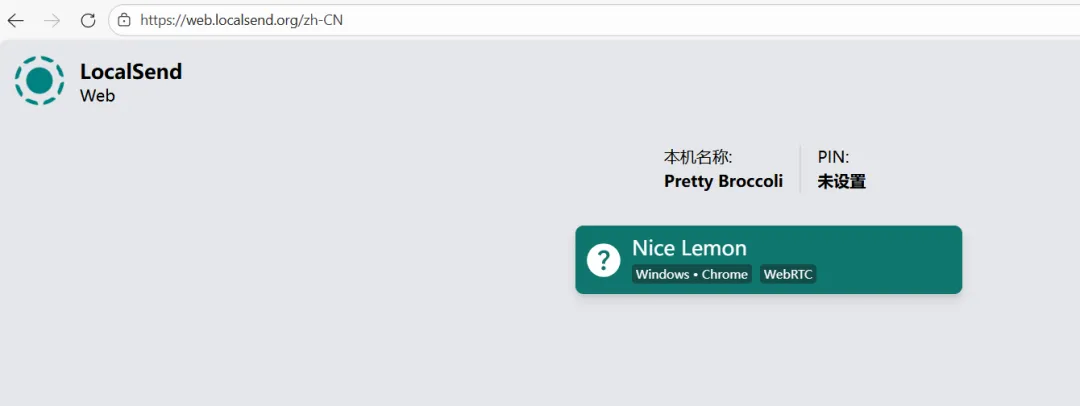 如果不想安装软件,可以直接打开下面的地址,在两台电脑或者设备的浏览器打开,也能快速传输文件,但功能有限。如下图。