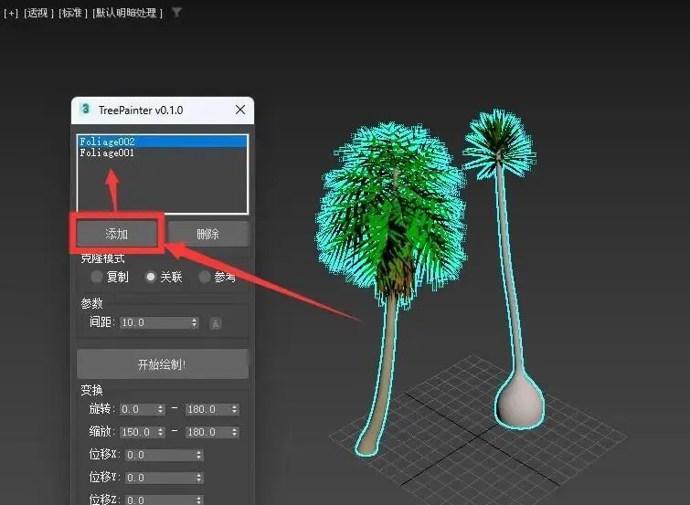 TreePainter插件无需安装,使用时直接拖动插件脚本文件到3dmax视口中打开即可。
