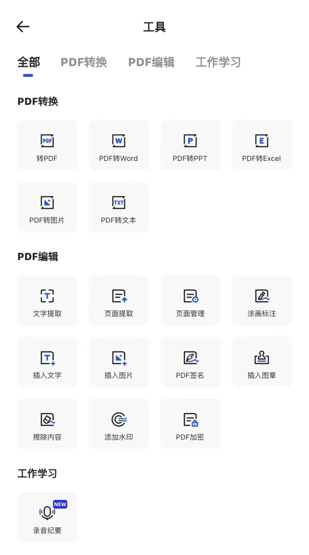 工具还是挺多的,这些PDF转化和编辑,只要是办公人士几乎都离不开。对了还有录音纪要,这更是会议纪要者的福音。