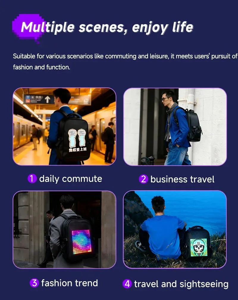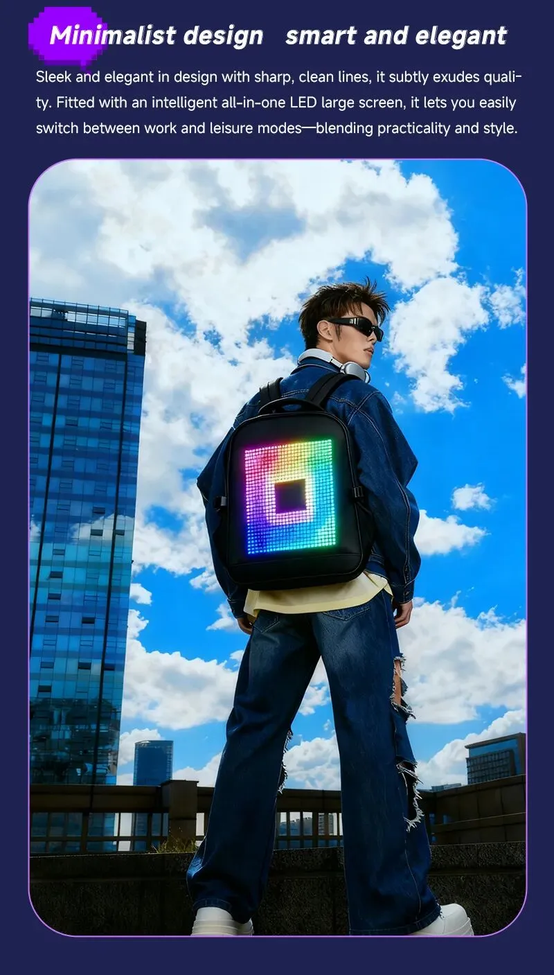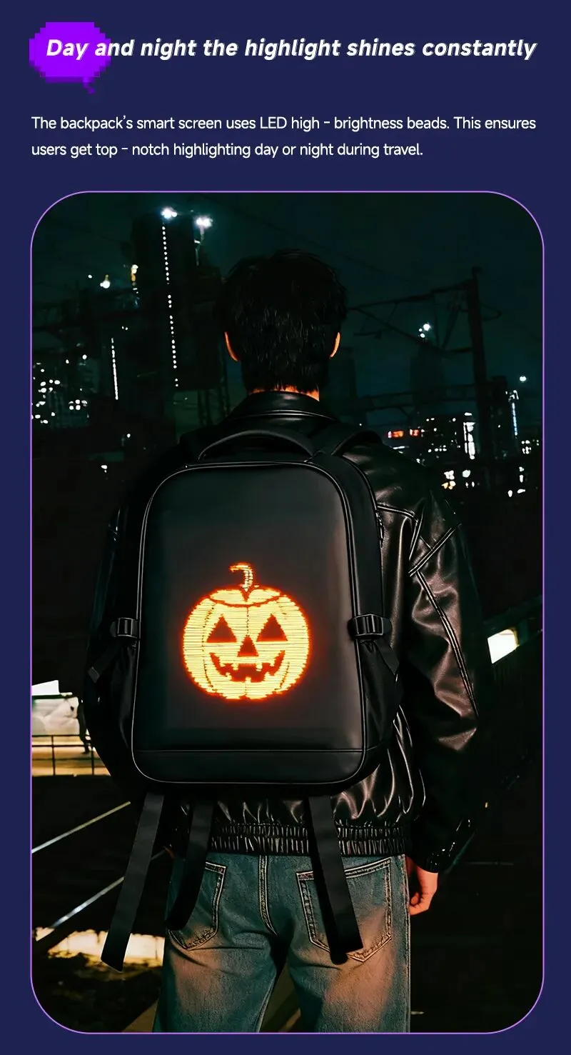 自带屏幕的 LED 背包也太酷了!APP 换图换字,夜晚发光超吸睛,夜骑通勤安全感拉满,潮人必备