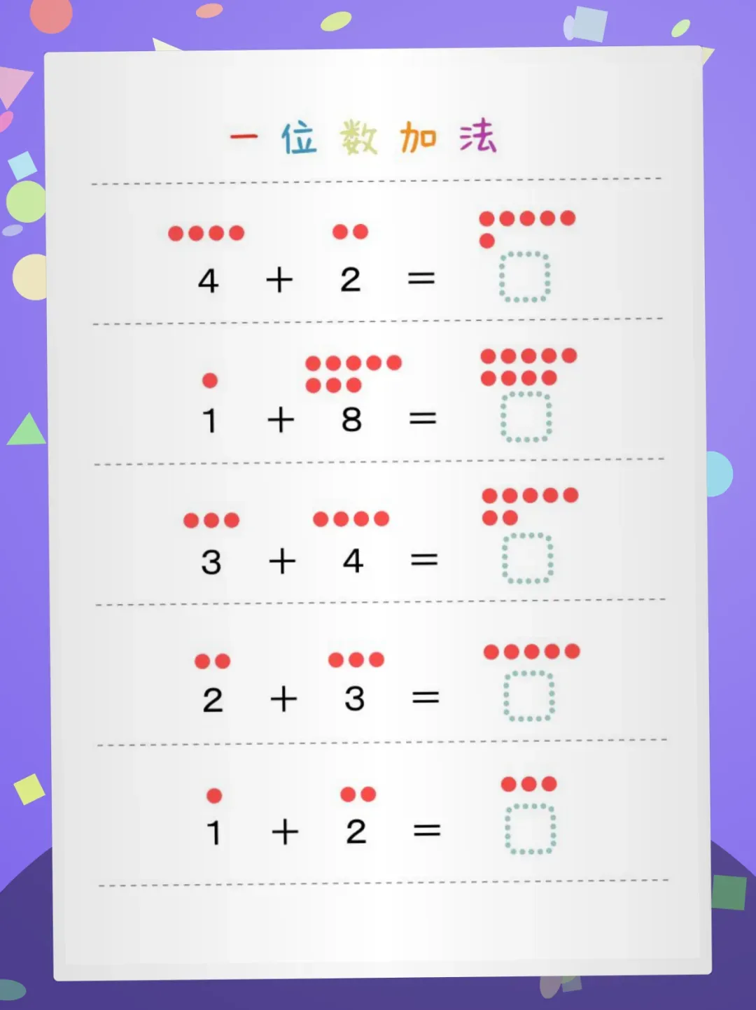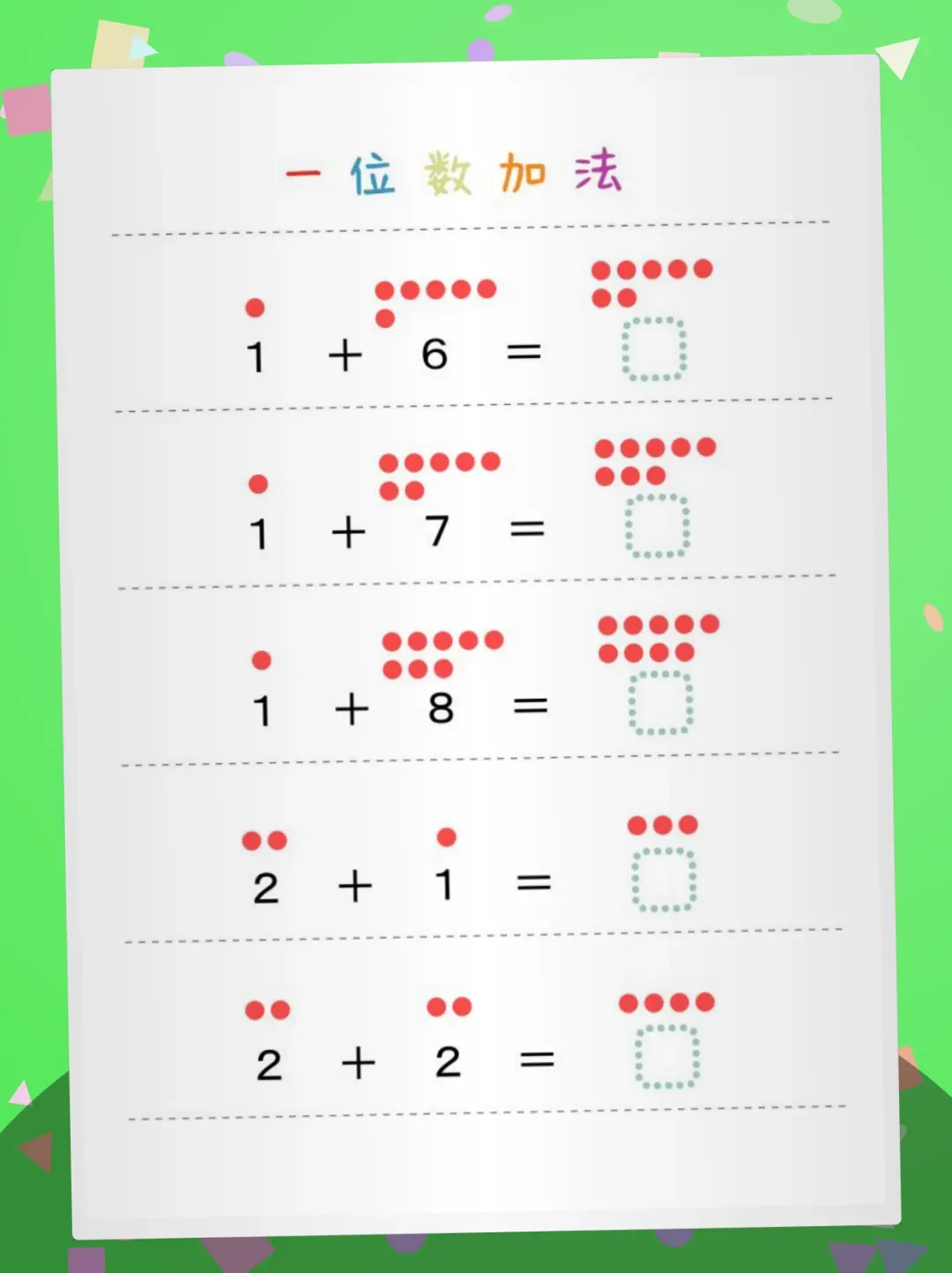 ✅专为一年级孩子设计的趣味加法入门资料,用图形化珠算符号+生活化口诀(如‘1+2=三村’),轻松建立数感和运算直觉