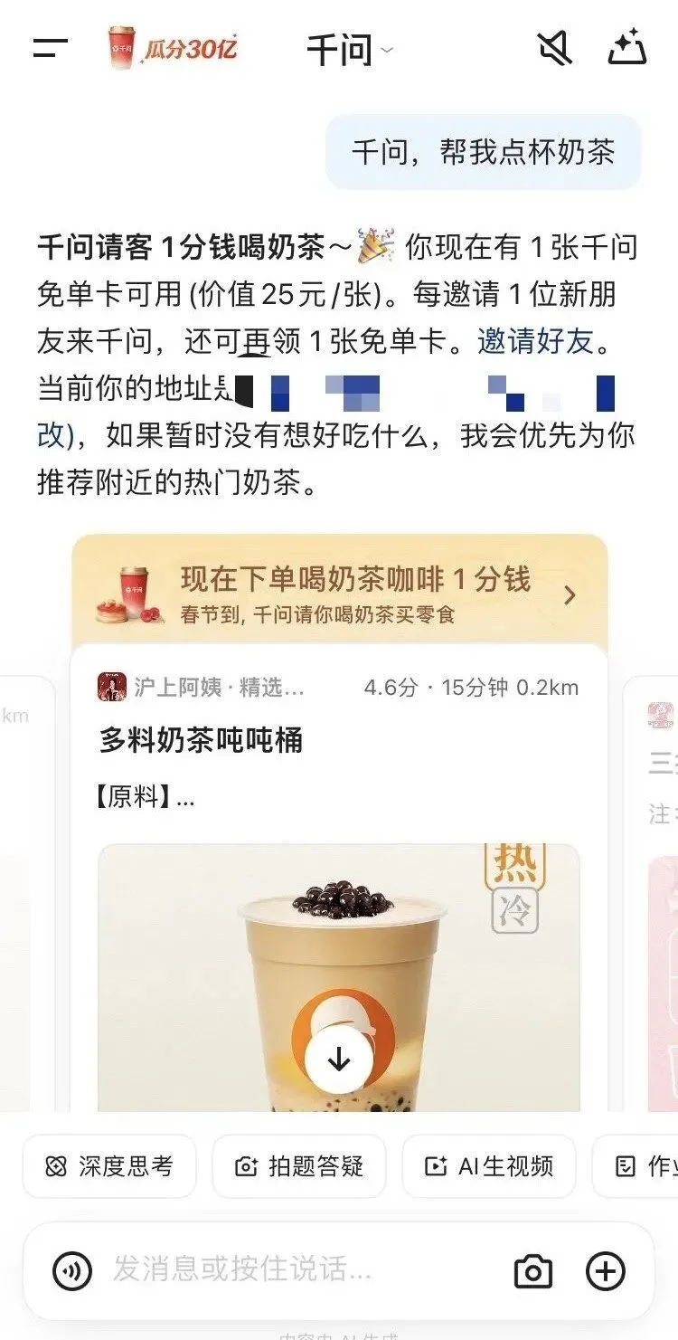 千问APP一分钱喝奶茶延迟至28日了~现在人少了立马可以点(附教程)