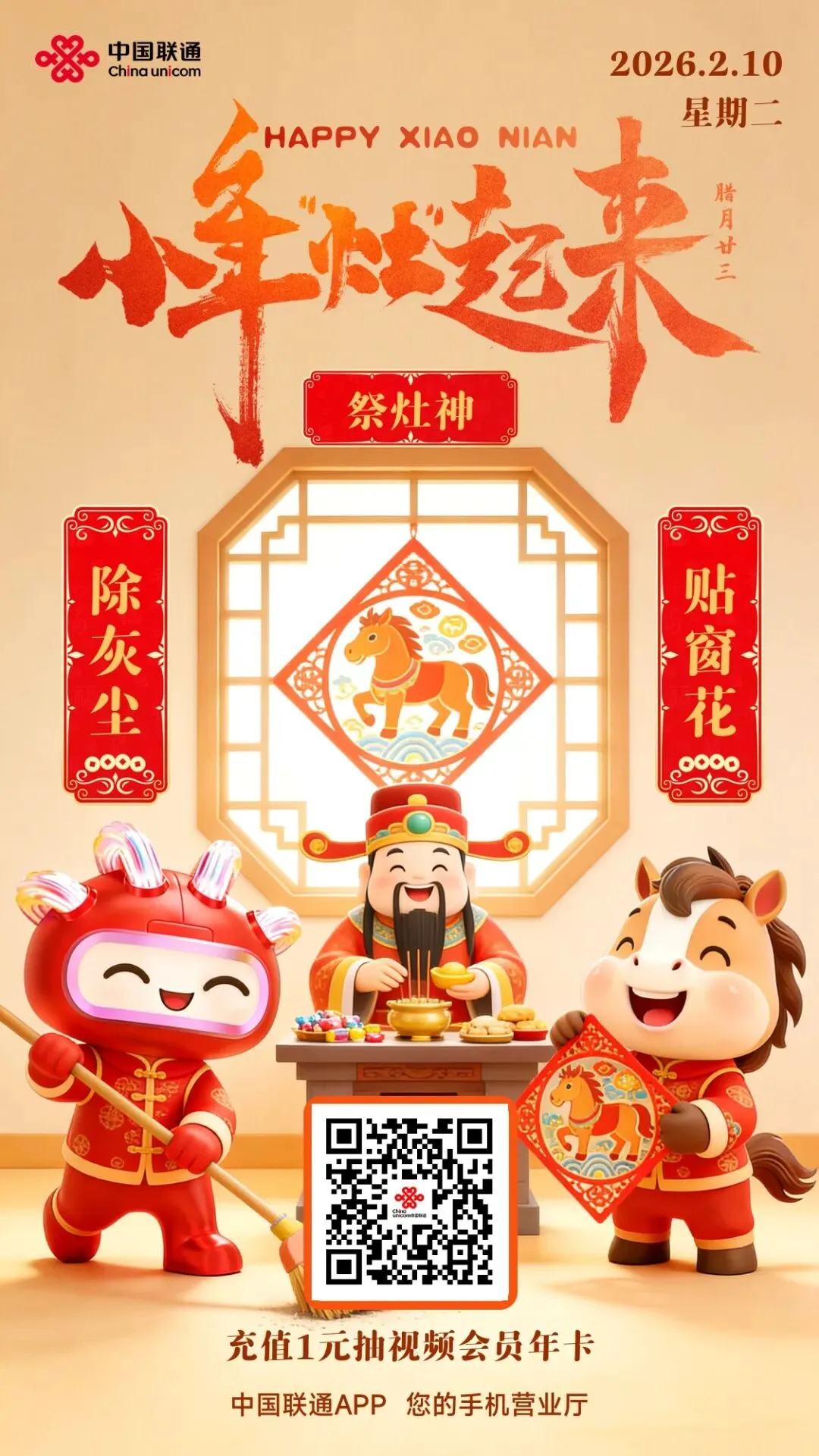 小年“灶”起来,上中国联通APP参与充值1元抽视频会员年卡