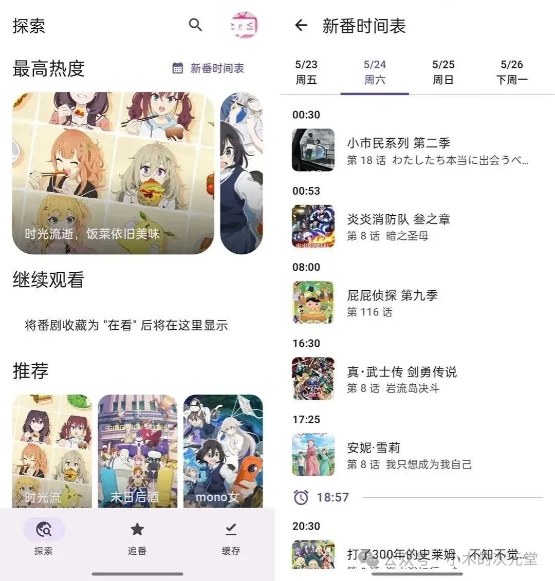 方便随时查看新番更新下方依次分为搜索,追番,缓存三个板块,界面十分简洁,没有广子