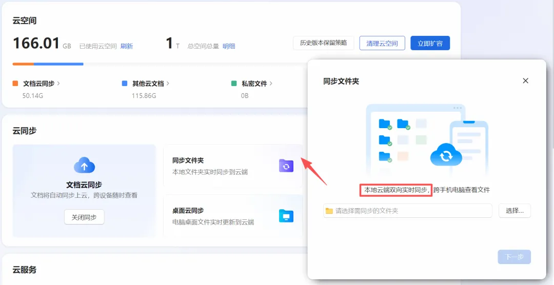 需要注意的是,同步文件夹后是本地云端实时同步。举个简单的例子,如果我们在电脑上创建或者删除一个文件,在网络畅通的情况下,那么云端也会同时创建或者删除一个文件。这一功能最担心的就是我们的手机流量,如果电脑网络用的手机热点,那这个同步功能就非常耗流量了。