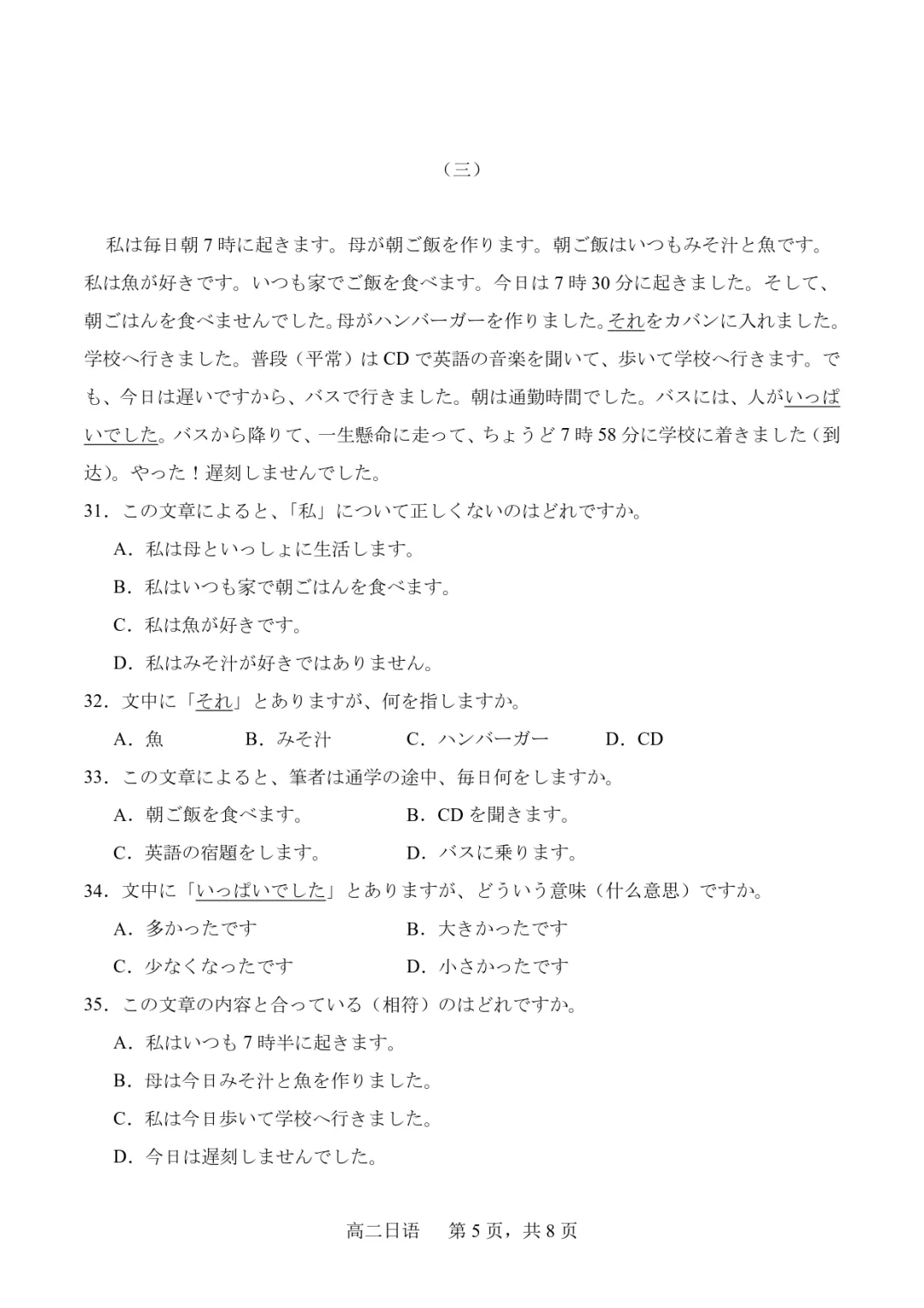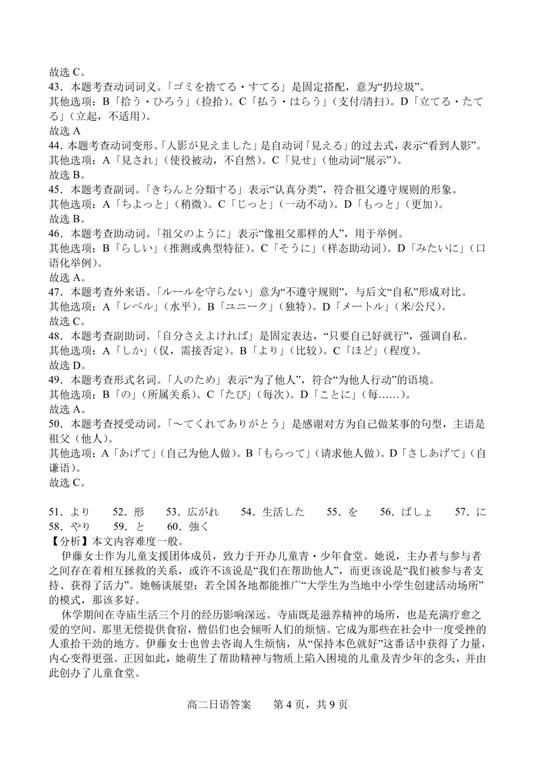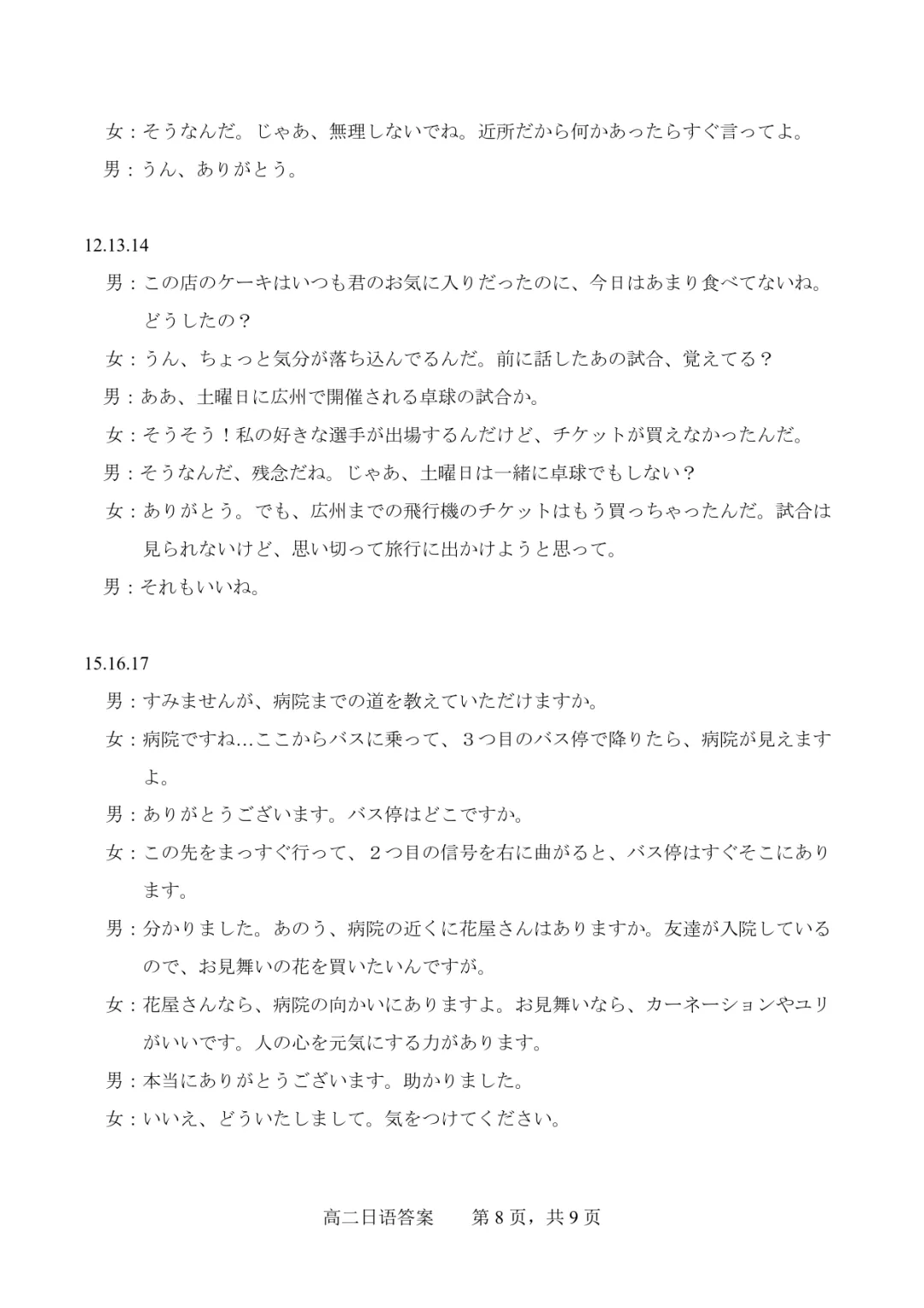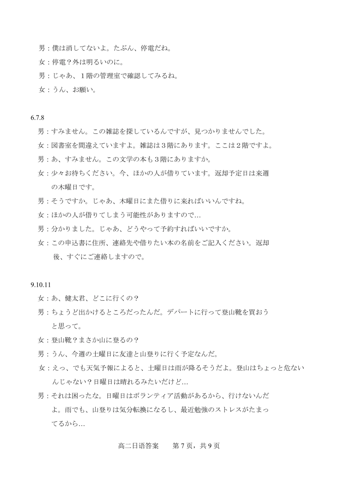 高二新听力日语word/PDF|四川字节精准教育联盟AI赋能2025~2026学年度上期期末综合能力调查高二日语试题-听力-答案-勇桑日语