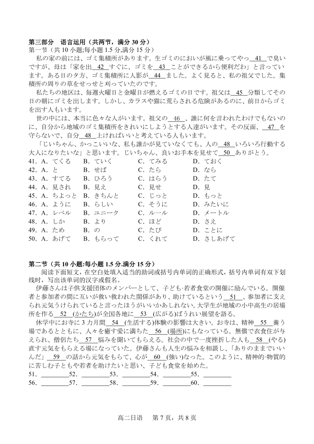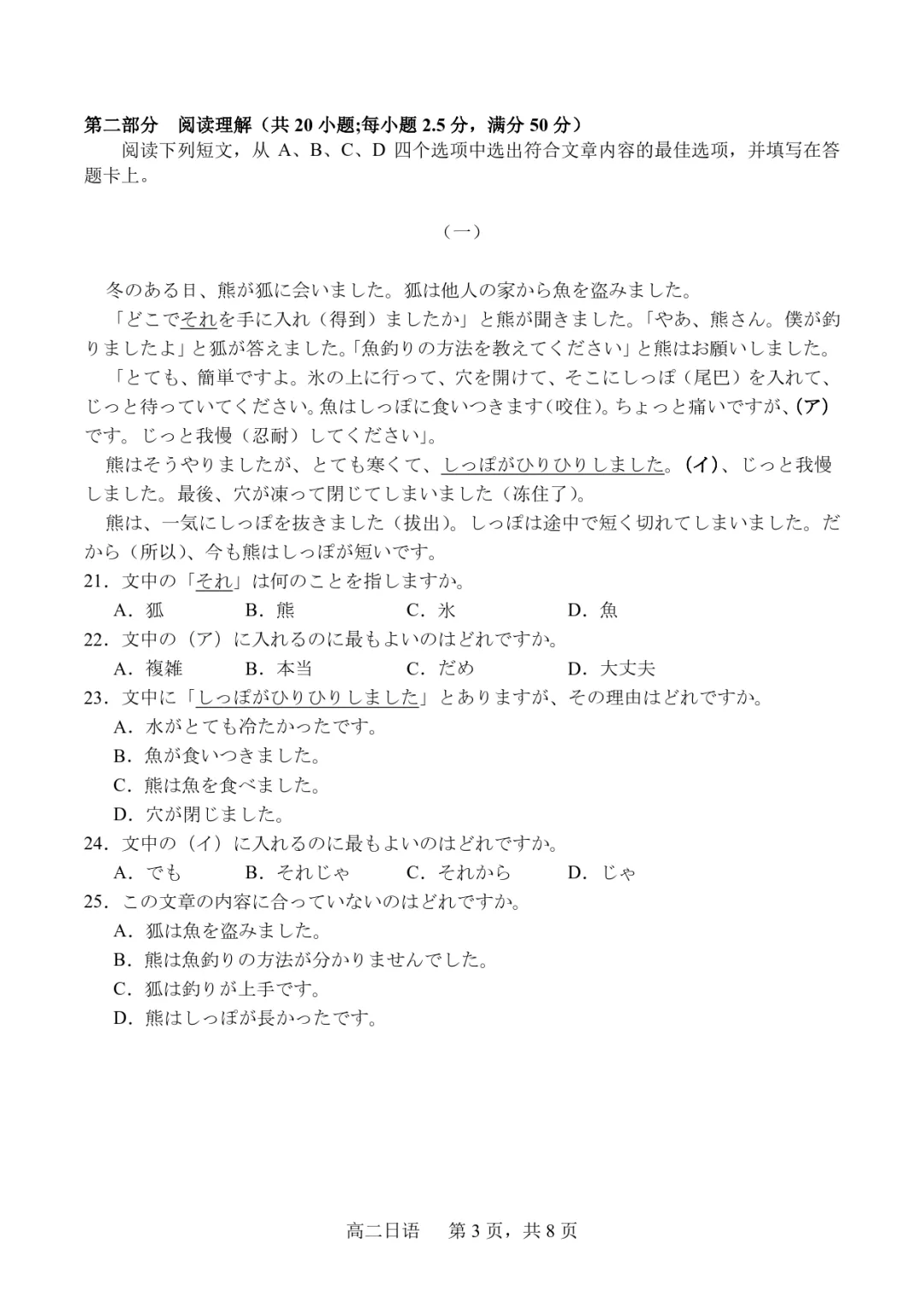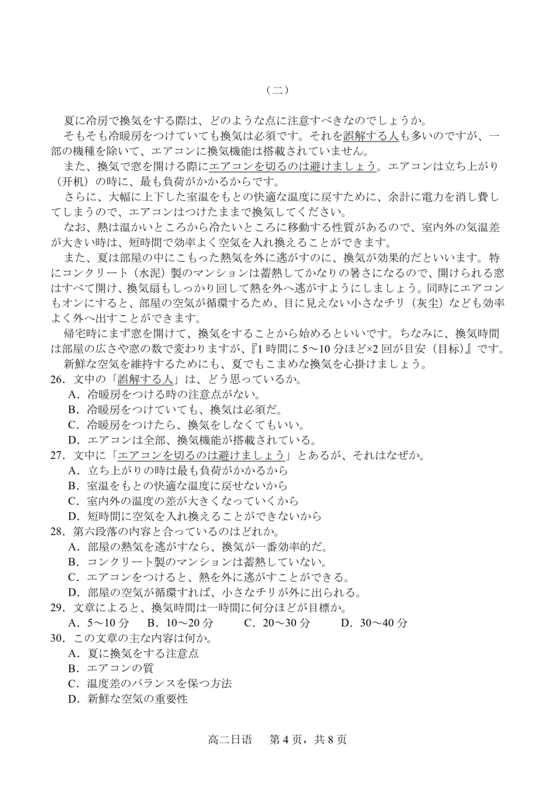 四川字节精准教育联盟AI赋能2025~2026学年度上期期末综合能力调查高二日语试题