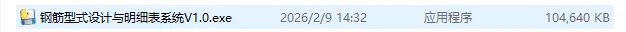 钢筋型式设计与明细表系统V1.0.exe文件即可启动软件。