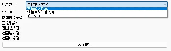 您还可以使用“根据直径计算长度”、“范围标注”来标注总长或某一段到另一段的距离。这里的标注用于钢筋表中自动计算单根钢筋长度。