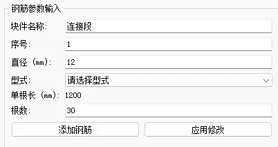 修改:选中一段钢筋,直接在左侧参数框修改长度,该钢筋段会实时更新。