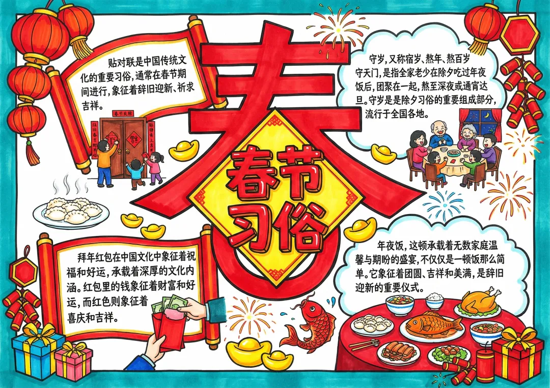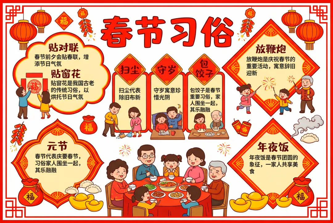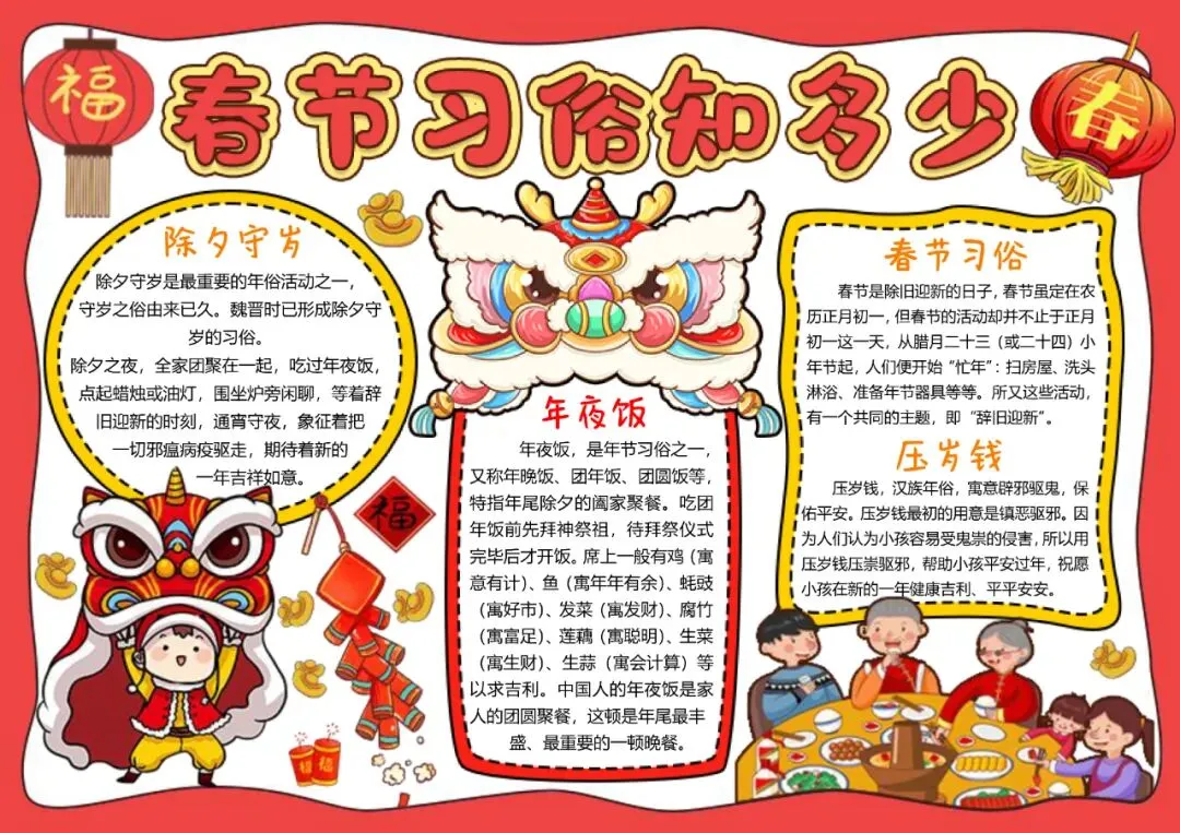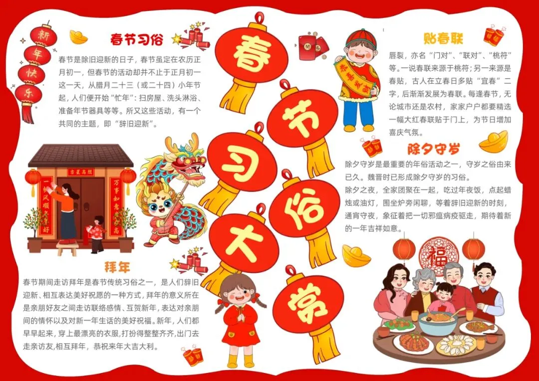 红色卡通春节习俗小报手抄报春节手抄报春节新年