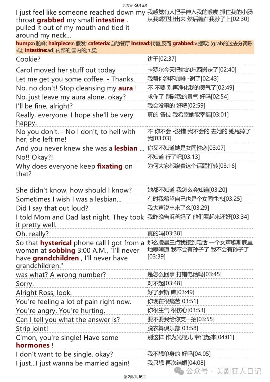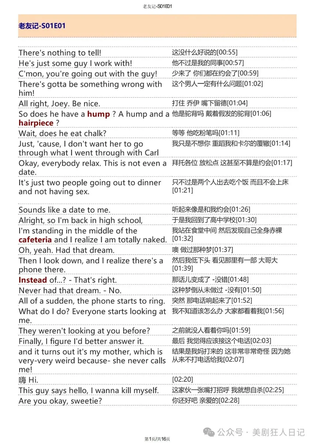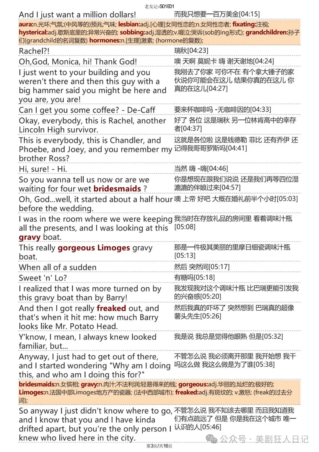 老友记剧本下载pdf(双语精排版)完整10季+单词注释+mp3