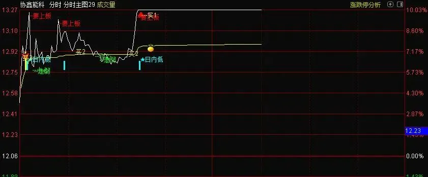 DRAWTEXT(FILTER(追击涨停,30),分时均价线+(参考散户线-分时均价线)/2,’买2′),COLORYELLOW;